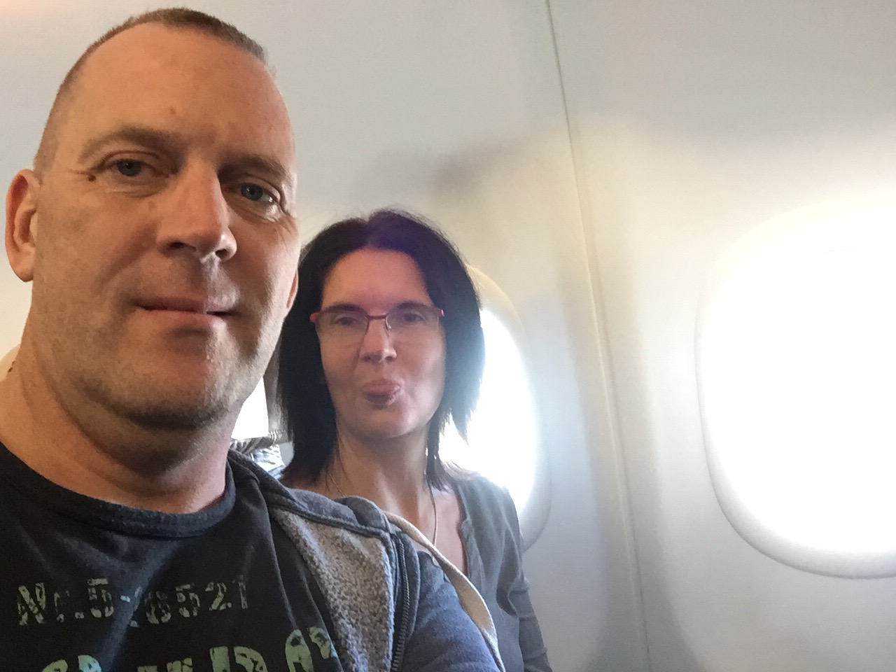 Aber auch diese 3 Stunden gingen um und wir durften das Flugzeug von Air Berlin, das uns nach Stuttgart bringen soll, besteigen. Es war eine erste positive und negative Überraschung. Ein grosser Sitzabstand und wir sassen allein in einer Dreierreihe. Aber das Flugzeug hatte überhaupt kein Entertainment Programm. Keine Bildschirme in den Sitzen. Na ja dachten wir. Ist ein Nachtflug und die 6 Stunden pennen wir. Wenn es mal alles so kommen würde!