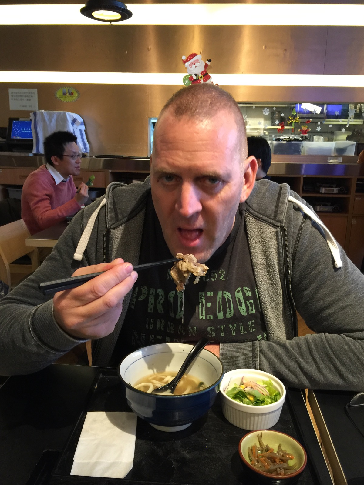 Wieder auf unserer Seite angekommen, waren wieder in der gleichen Ecke wie gestern essen. Dieses mal in einem chinesischen Lokal, indem viele Einheimische saßen.