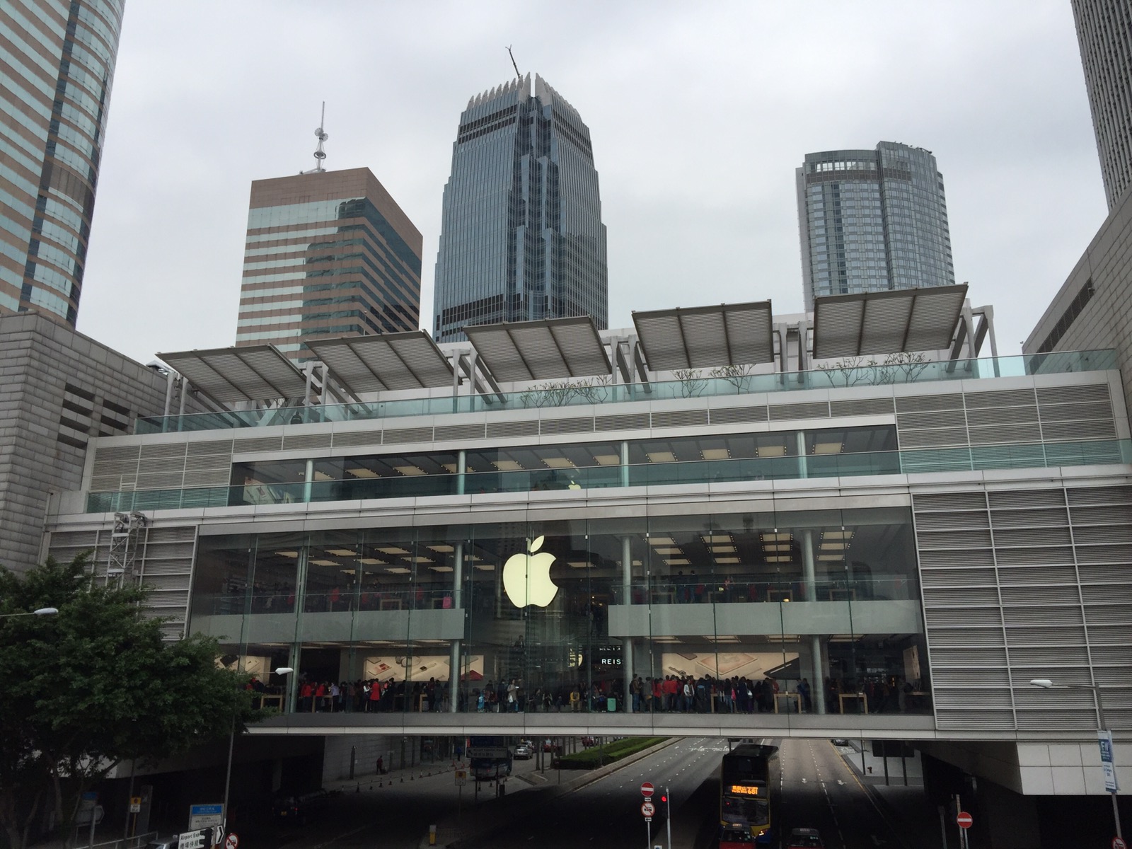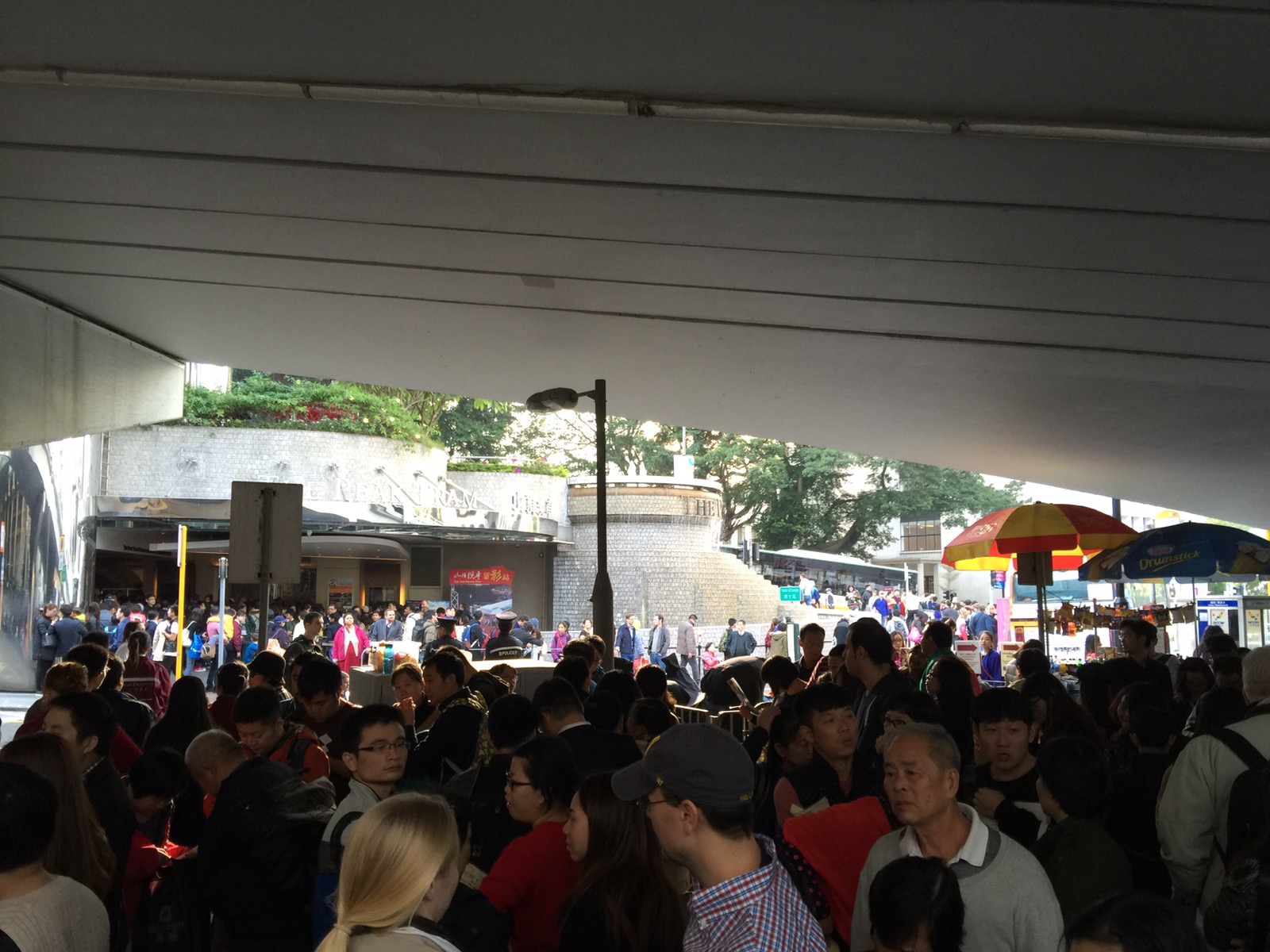 Gegen halb elf haben wir den Hotelshuttelbus genutzt und sind zum Pier gefahren. Wir wollen heute Tagsüber Hongkong Island erkunden und am späten Nachmittag rauf auf den Peak. Wir sind mit der Star Ferry, die man auch mit der Octopus Karte bezahlen kann rüber gefahren. Das hat umgerechnet 50 Cent gekostet. HK Island ist voller Hochhäuser und Shoppingcenter. Die Strassen und Kaufhäuser sind brechend voll. Vor dem Apple Store eine ewig lange Warteschlange nur um rein zukommen und in drinnen weite Warteschlangen. Wir sind so anderthalb Stunden durch die Strassen gelaufen aber irgendwie alles das selbe und doch an jeder Ecke neu Eindrücke. Irgendwie haben wir uns erschlagen gefühlt. So langsam kam auch der Mittaghunger durch und wir wollten uns was zum Essen suchen. Aber vor jedem Restaurant Warteschlangen vor der Tür. Irgendwie haben die hier zu wenig Restaurants. Wir sind dan wieder zurück Richtung Pier und haben da im IFC Center bei McDonald was geholt und haben das im stehen gegessen. Nach dem Essen wollten wir mit dem HopOn HopOff Bus eine Stadtrundfahrt machen aber ca. 50 € pro Person war uns zu heftig. Übrigens, Hongkong ist richtig teuer, teurer als Deutschland. Ausser der McDonald, der ist voll günstig. 5€ für 2 Menü bezahlt.