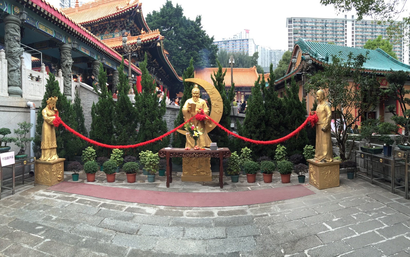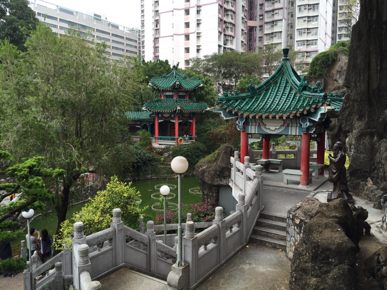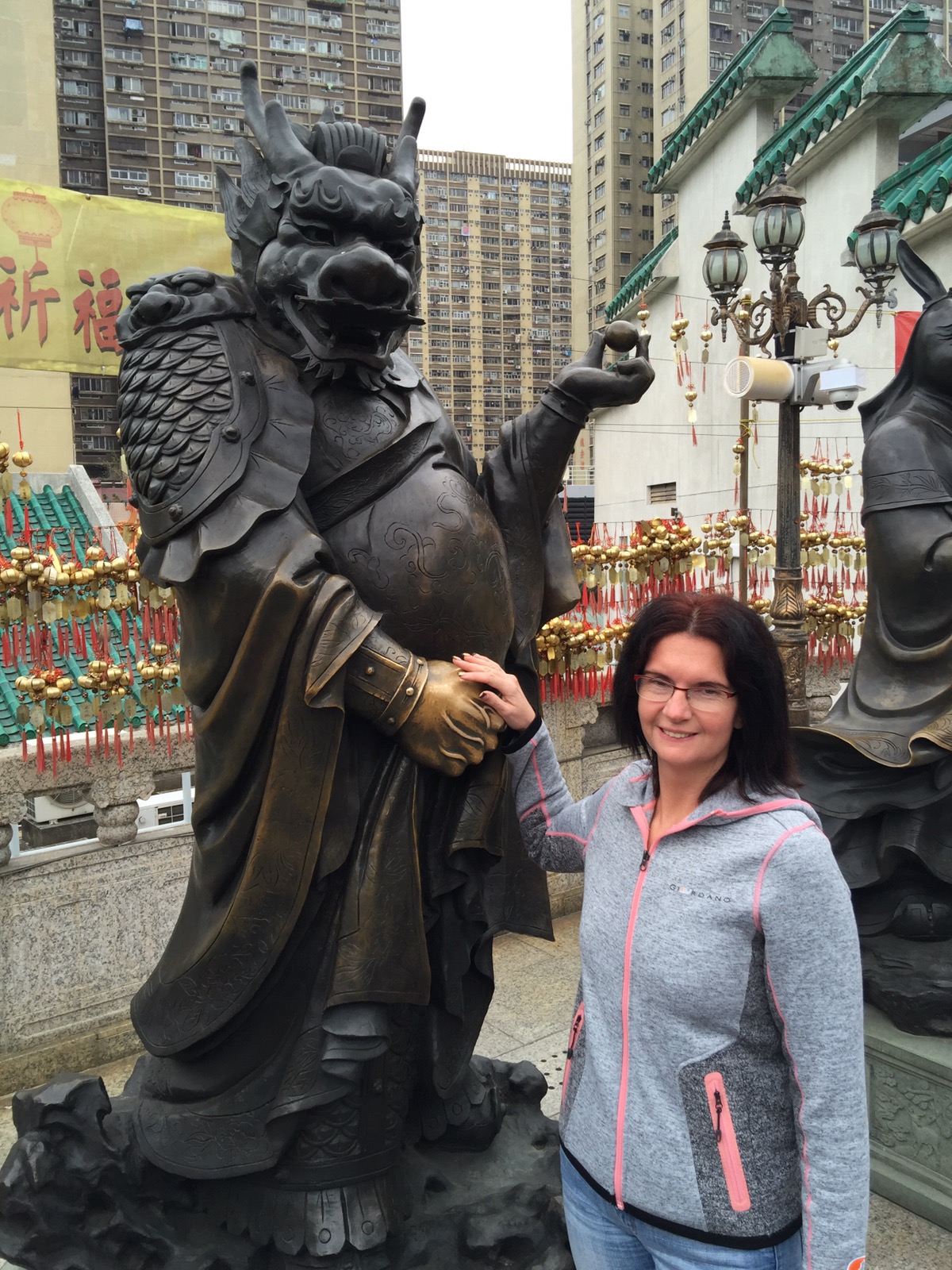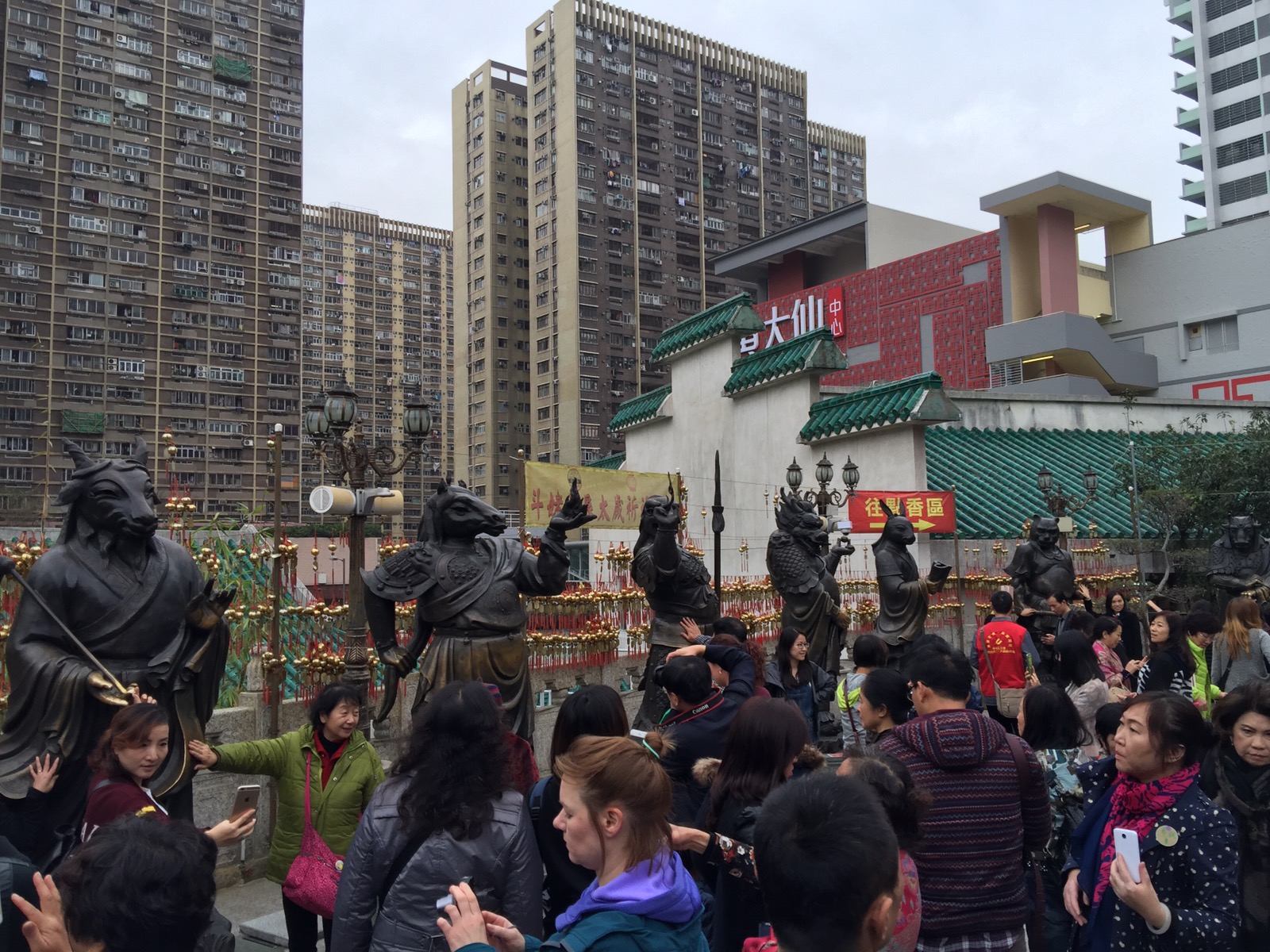 SikSik Yuan Tempel ganz interessant sein. Das soll ein taoistischer Tempel in traditioneller Bauweise sein. OK, ein wenig Kultur kann nicht schaden. Die Anfahrt mit der MRT ist auch problemlos. Vor Ort angekommen, sehen wir auch warum dies der beliebteste Tempel in Hongkong ist. Aber so voll wie in den Restaurants ist es aber nicht. Der Tempel selbst ist sehr interessant. Auch die chinesischen Tierkreiszeichen finden sich dort. Natürlich machen wir auch Fotos mit unseren Zeichen. Auch der angrenzende Garten ist nett anzusehen. Anschliessend waren wir noch in der daneben stehende Tempel Mall. Diese war mal nicht so auf Luxus gemacht sondern für normale Leute. In der oberen Etage war ein kleiner Möbelladen. Betonung auf „klein“. Wenn die Ausstellungsflächen so gross wie die hiesigen Wohnungen sind, dann würde nicht einmal unser Sofa in eine Hongkonger Wohnung passen. Die kleinen Möbel deuten aber auf diese kleine Wohnungen hin.
