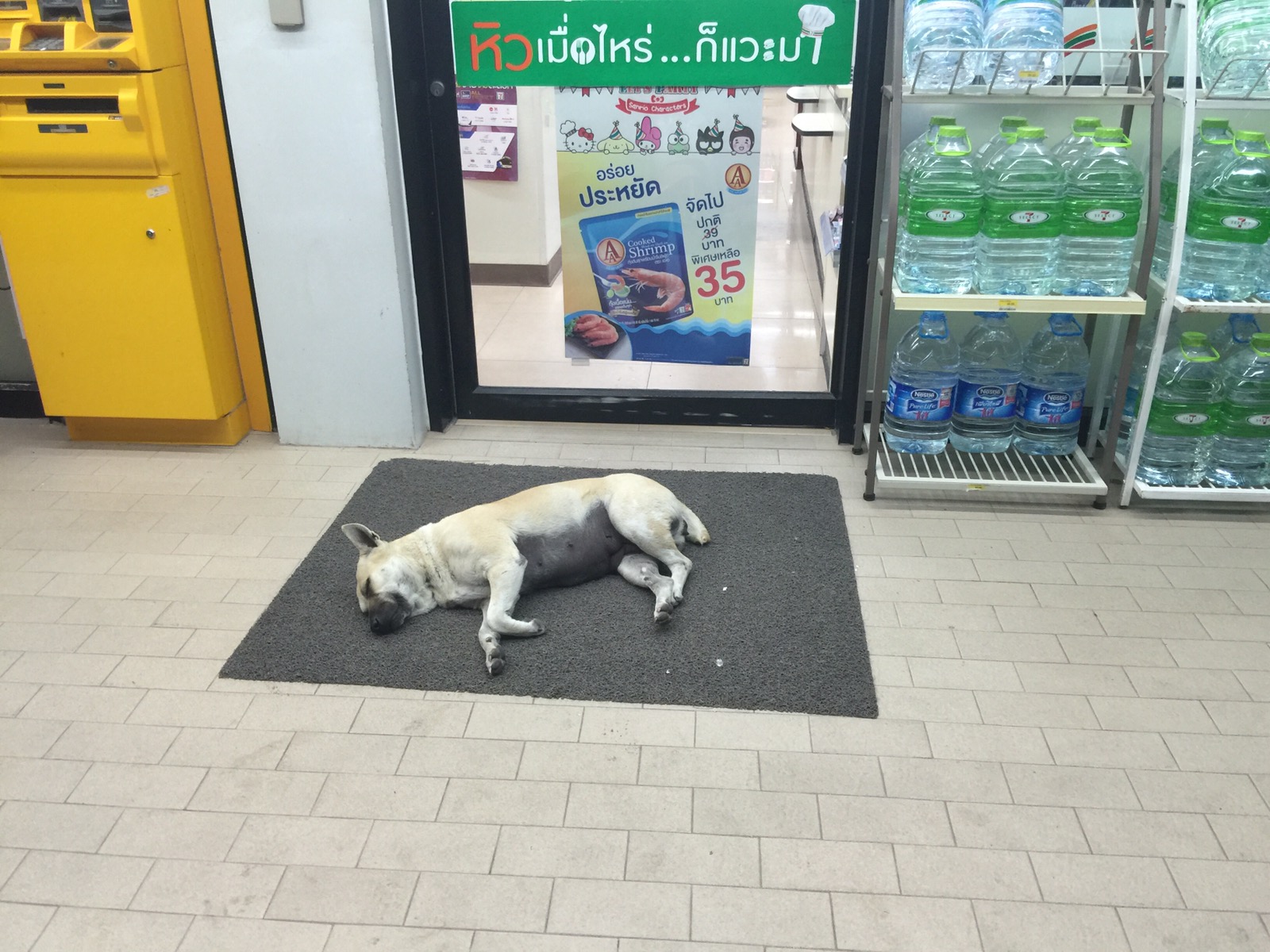 Hier gibt es auch wieder Thaihunde, die sich vor der 7eleven Tür abkühlen