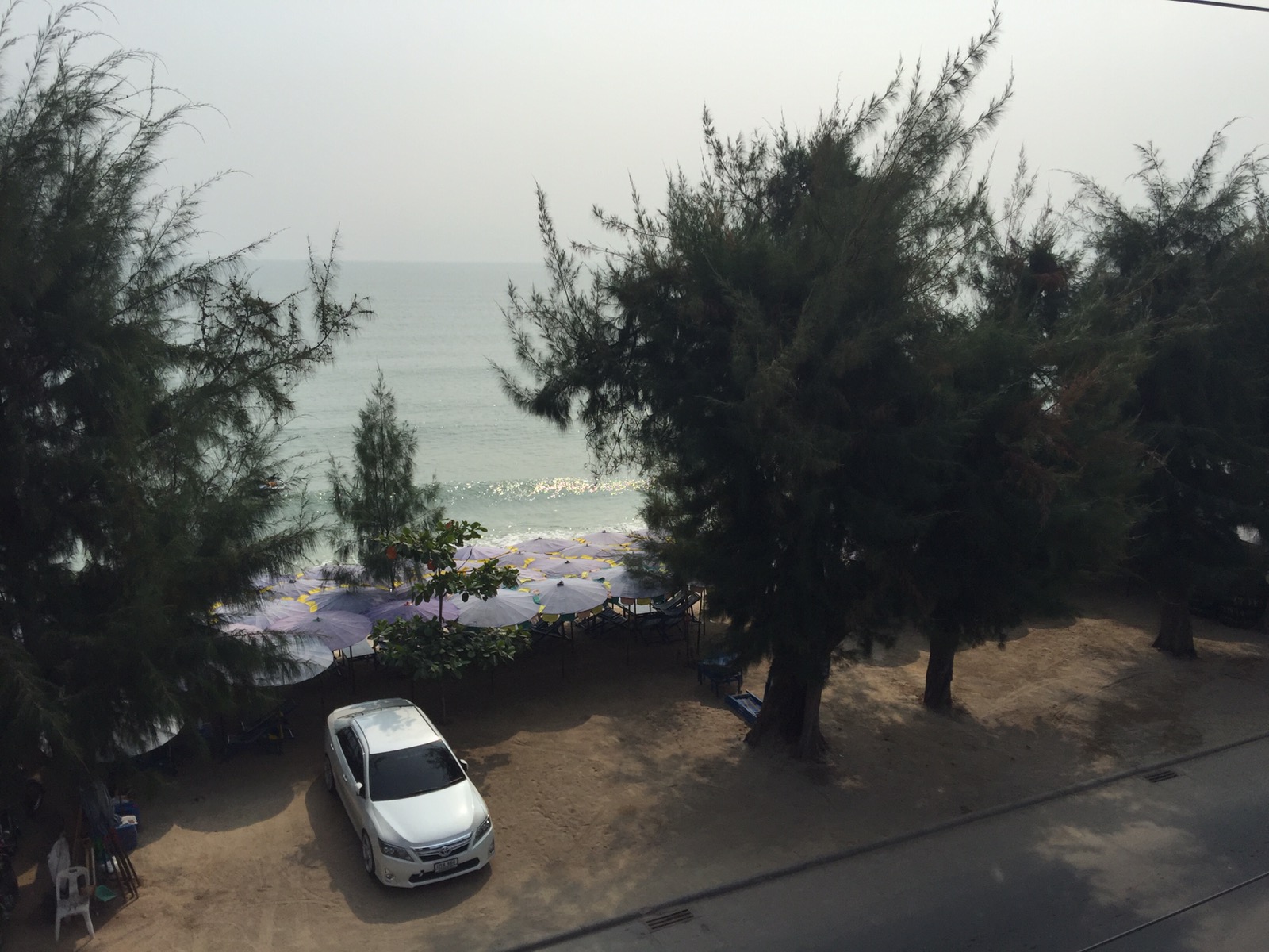 Wir hatten Glück, das wir heute bewölktes Wetter hatten, den die Zimmersuche erwies sich schwieriger als gedacht. Es steht Weihnachten und ein Wochenende an. Cha-am ist ein Ort, an dem traditionell die Thais ihr Wochenende und die Feiertage verbringen. Hinzu kommen noch die Weihnachsflüchtlinge aus Europa. Wir waren schon drauf und dran nach Bangkok zurück zu fahren. Aber wir wollten die Feiertage hier verbringen. Also sind wir noch einmal los gezogen und haben den ganzen Vormittag die Strandstrasse nach einer Unterkunft abgesucht. Und wir wurden fündig. Ein Hotel das vom Preis nicht zu hoch ist, aber auch keine Bruchbude ist und was wichtig war, ein Bereich zum relaxen hat. Das ist hier bei der engen Bauweise selten. Wir haben gleich gebucht.