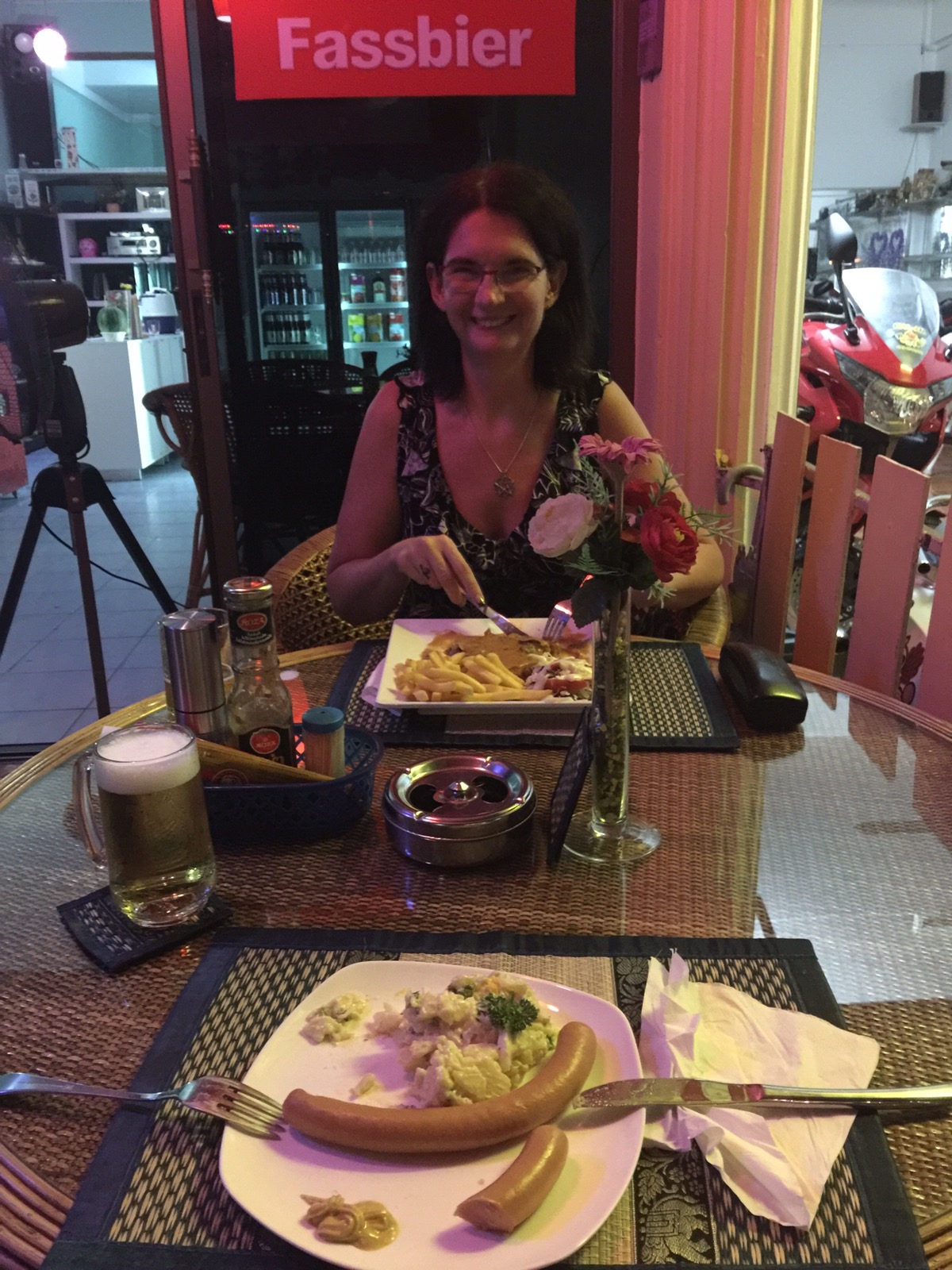 In den Grossstädten wie Hongkong und Bangkok sieht man mehr von Weihnachten. Aber hier in der Provinz ist nur an den grossen Hotels und an manchen Gästehäuser ein Weihnachtsbaum zu sehen. Hier wohnen auch viel Europäische Männer mit ihren Thaifrauen. Die wollen auch ein wenig Weihnachtsstimmung haben. Auch gewisse Strassen, in den die Mädels fleissig sind, sind heute röter als sonst. Muss an dem knappen Weihnachtsoutfit liegen. 😜 Habe leider keine Bilder.
