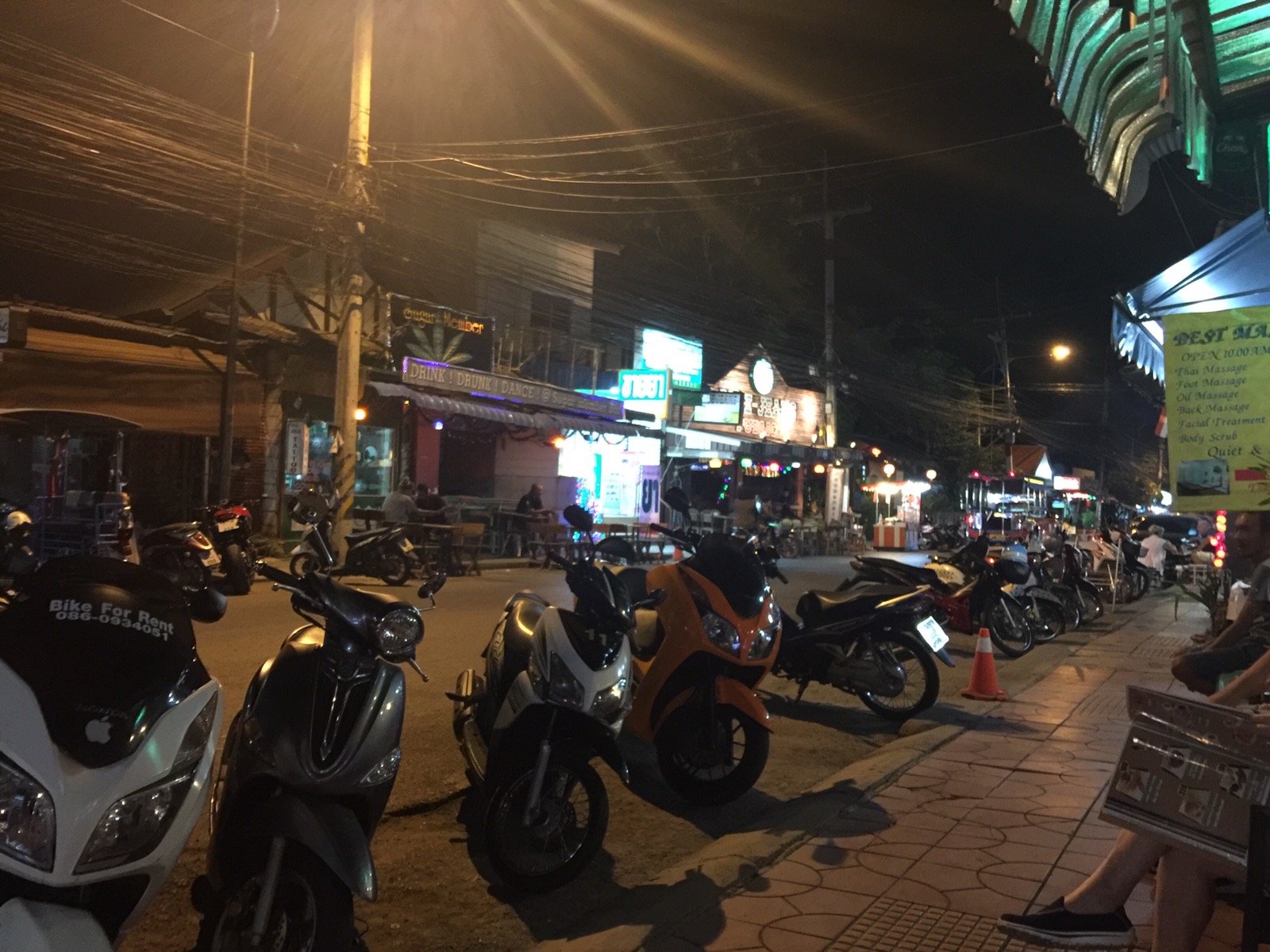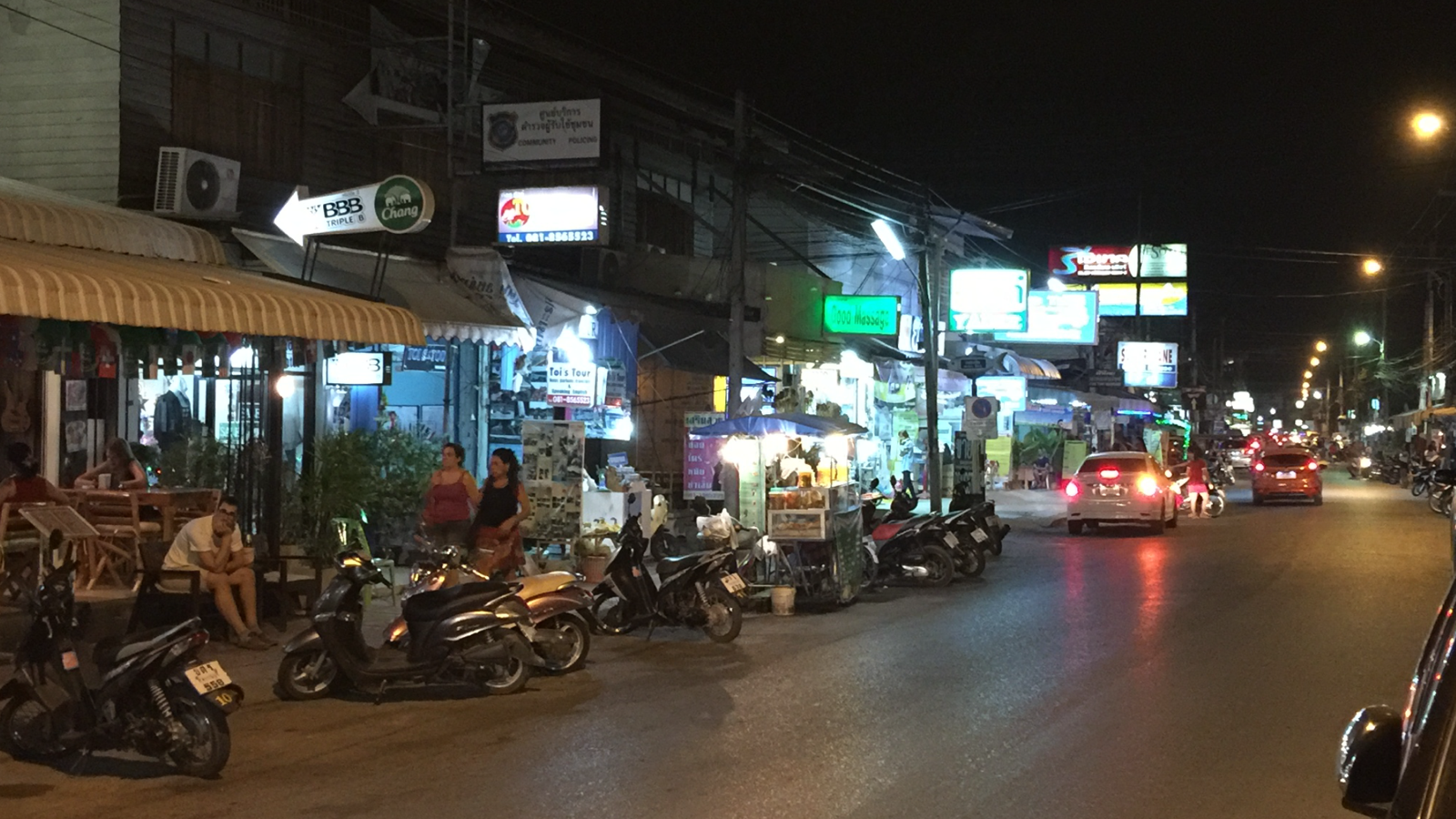 Und wir können sagen, das ist wohl die coolste Stadt, die wir in Thailand bereist haben. Schon auf dem Weg vom Busbahnhof zur Hotelzone haben wir faire Preise mit dem Taxi bezahlt. Auch das Tuk-Tuk wollte keine horrende Preise. Und dan Abends auf der Strasse coole Kneipen mit einem interessanten Publikum. Schade, das wir nicht schon früher hier waren.