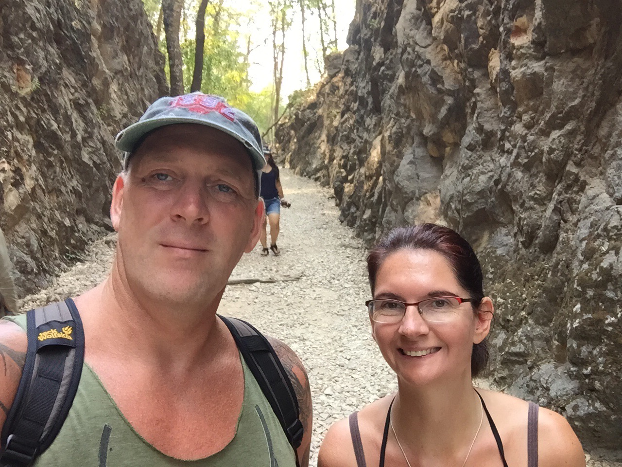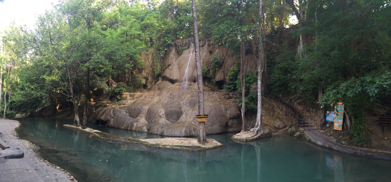 Zu erst ging es zum Wasserfall Sai Yok Noi in Nam Tok, der wie üblich in Thailand, kein Wasser hat. Diese Fahrt hat eine Stunde gedauert.
