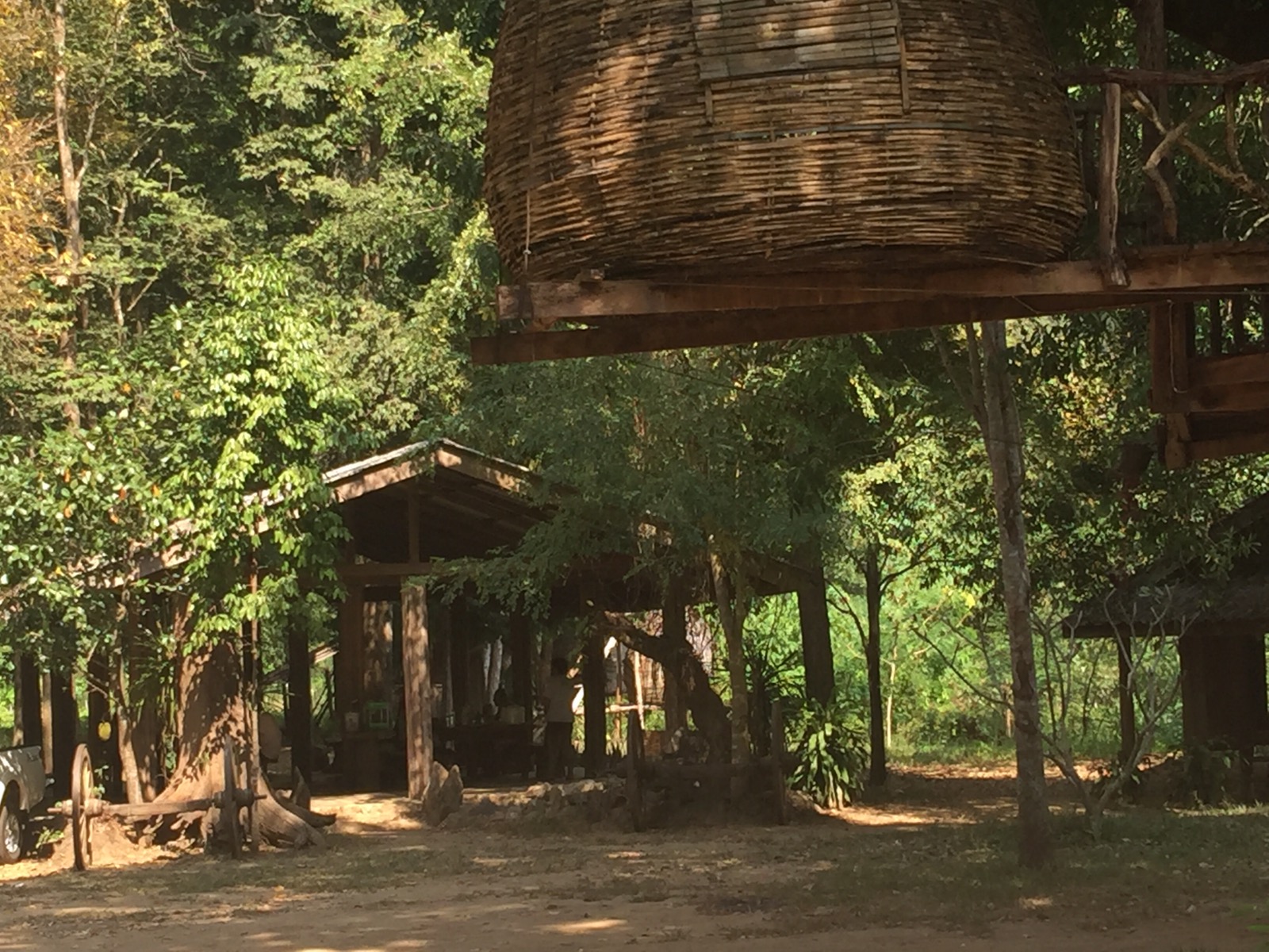 Danach sollte es was zu essen geben. Wir sind wieder 30 Minuten gefahren und die Gegend wurde immer abgelegener. Wir hielten an einen Grundstück, auf den ein paar Hütten standen und 2 Elefanten an einem Baum gefesselt waren. Dort sollte es das Mittagessen geben. Schon die Location alleine machte keinen sauberen Eindruck. Das Essen, das auf den Tisch kam, sah aber gut aus. Der Tour Guide hat das Besteck verteilt. Er hat es vorne an der Stelle angefasst, die in den Mund gehört. Dies ist ja schon alleine unhygienisch aber im Bus vorher war sein Finger die ganze Zeit in seiner Nase vergraben. Das hat uns vollkommen den Appetit verdorben. Gut das wir immer was zum essen dabei haben. Die anderen Tourmitglieder konnte ich nicht mehr warnen. Wir waren als letztes dran und die anderen haben schon kräftig gespeist. Nicht das dann das grosse Brechen bekommenen hätte.