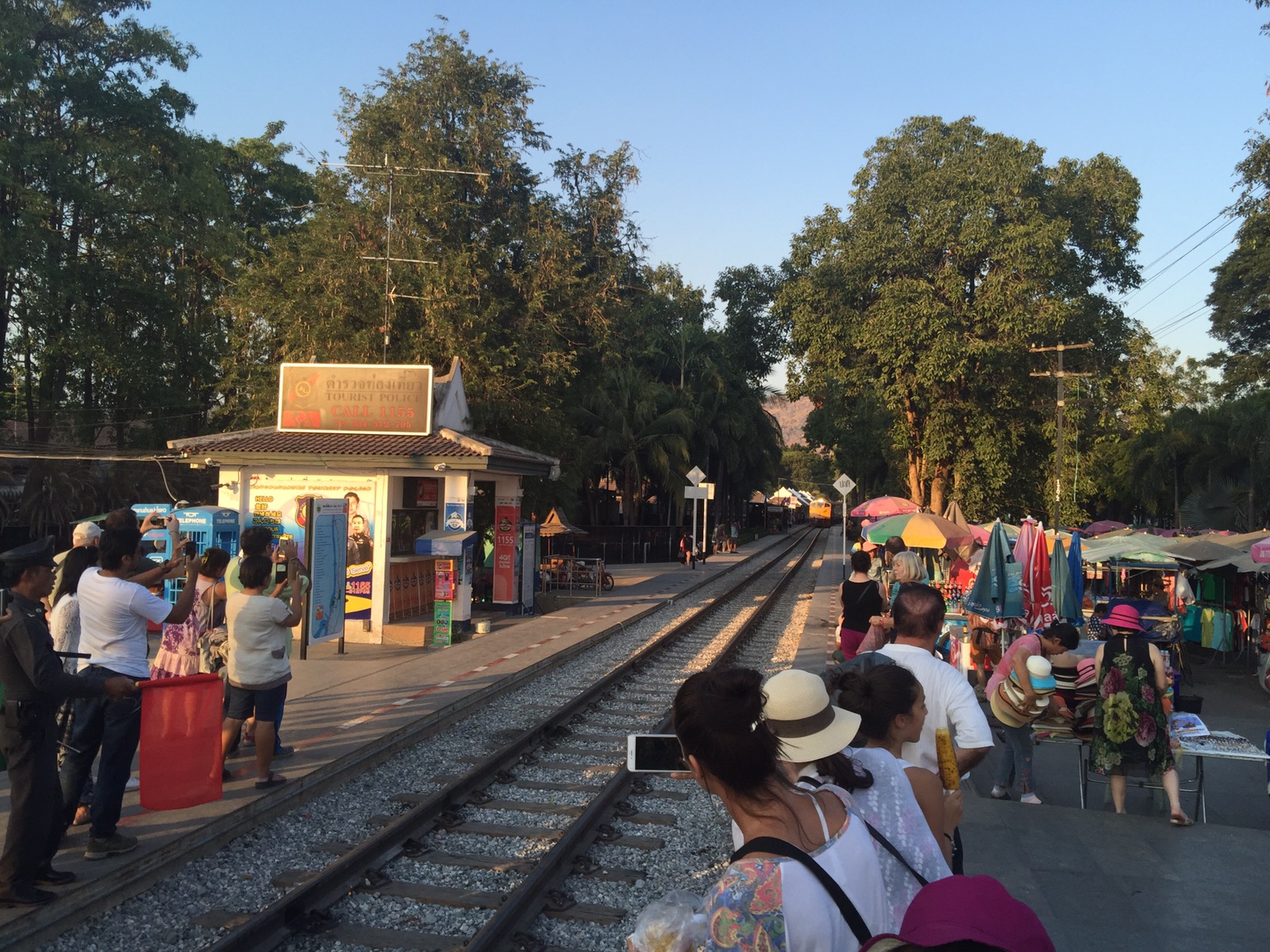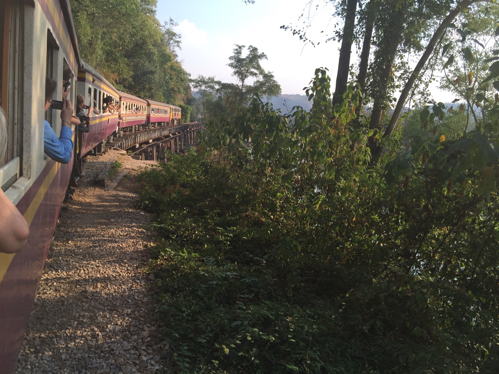 Wir wollen ein Stück mit der Eisenbahn fahren. Nämlich das interessanteste Stück zur River Kwai Brücke. Das über das Wang Po Viadukt. Ab der Haltestelle Tham Krasae von Nam Tok aus gesehen. Im Fernsehen hat man davon schon Bilder gesehen und hin wollte ich sowieso mal. Die Fahrt selber ist sehr kurz und wenn man in dem Zug sitzt, ist das weniger aufregend als wie von aussen betrachtet.