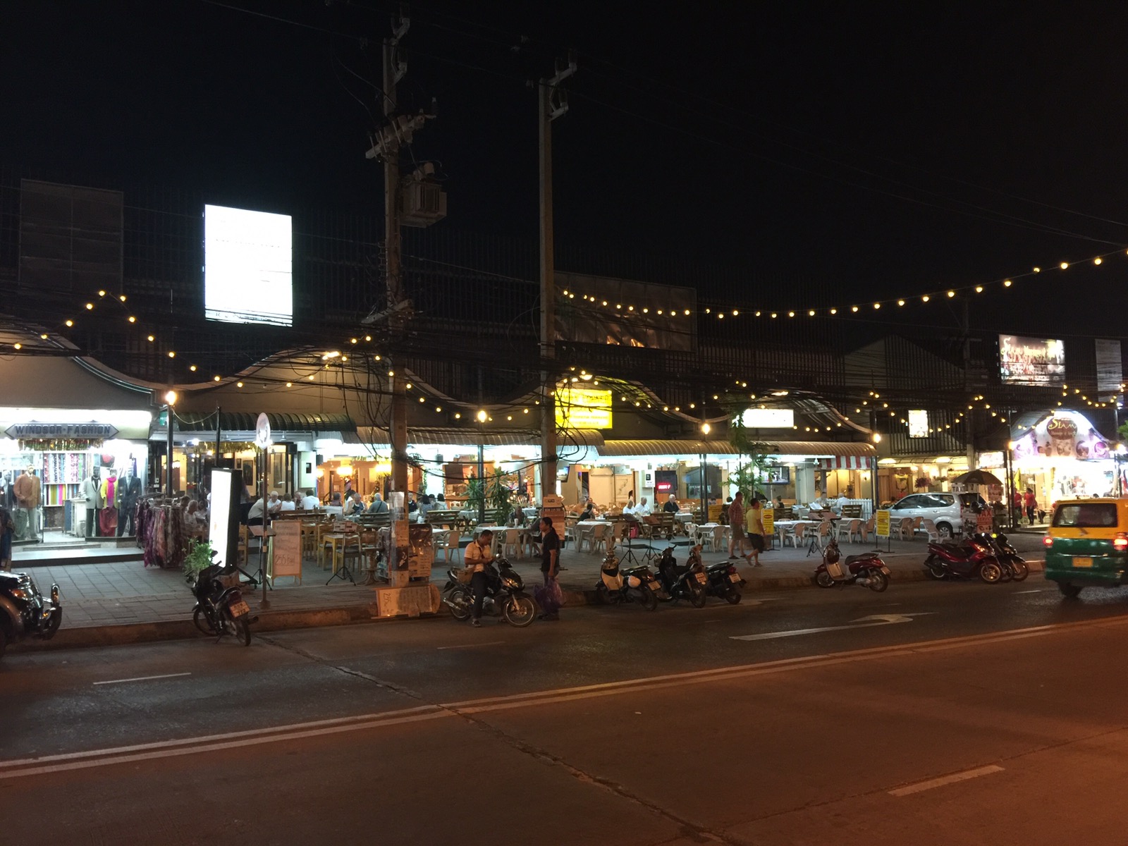 Von Samstag auf Sonntag sollte man nicht in Cha-am sein. Die ganze Nacht war Party auf der Strasse. Geschlafen haben wir nicht viel. Und als wir Morgens um 6.30 Uhr auf die Strasse Richtung Bushaltestelle gingen war mehr los als unter der Woche am Abend.