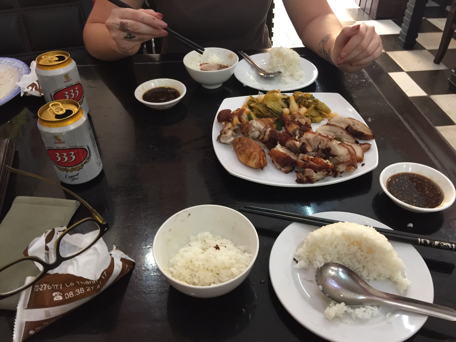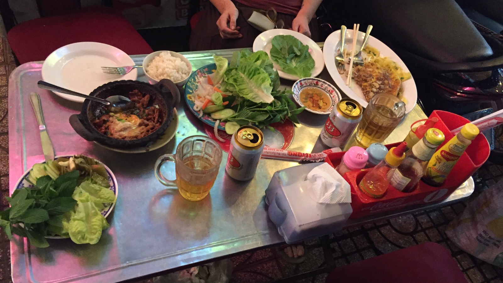 Dieses mal, haben wir uns, vom vorab gebuchtem Hotel abholen lassen. Wenn man Abends ankommt nach 24 Stunden Anreise will man nicht noch suchen müssen. Hat alles super geklappt. Das Alagon Hotel & Spa liegt ziemlich Central und hat ein super Preis Leistung Verhältnis. Wir nur kurz auf Zimmer zum Umziehen dann was zum Essen gesucht. Wenige Meter weiter sind wir auch fündig geworden. Von außen sah es sehr ansprechend national aus. Die Speisekarte konnten wir nicht entziffern aber die Fotos darauf sahen lecker aus. Also genau das richtige für den ersten Abend nach 24 Stunden Anreise. Wir wurden rein gebeten aber es wurde uns gesagt, das wir die Treppe hoch müssten, da wäre noch ein Tisch frei. Wir also Treppe hoch und wir wurden in ein separates Zimmer gelotst. Schiebetür, Raum mit kleinem Tisch, Schuhe aus und auf Knien rutschen. Ohjee ein japanisches Restaurant. Aber was solls, der Hunger war groß. Nach ein paar Minuten mussten wir die Bedienung aber bei der Bestellung um Hilfe bitten. Sie konnte kaum englisch und wir kein vietnamesisch und kein japanisch. Es wurde ein lustiger Abend.