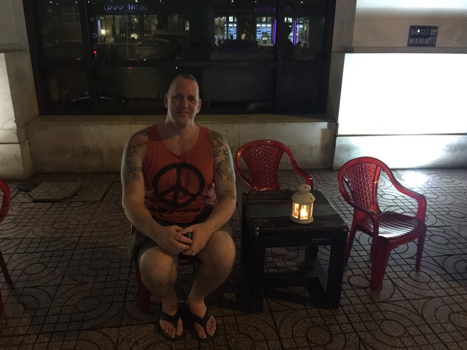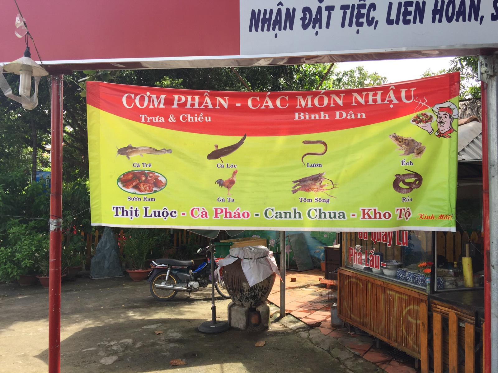 Und warum muss ich immer arbeiten wenn ich irgendwo bin? In Sri Lanka musste ich ein Boot an Land ziehen und hier, dieses Leuchtschild links, wollten die wirklich aufgehängt während Leute darunter saßen. Da ich ja nun leicht größer bin als der Durchschnittsvietnamese habe ich kräftig angepackt.