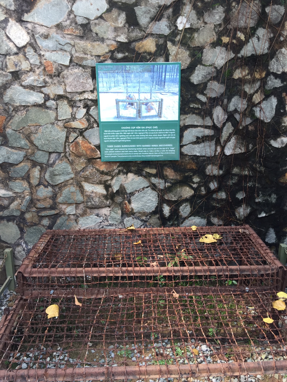 In diesen Käfigen wurden Menschen eingesperrt. Es gibt vor Vietnam die Inselgruppe Con Dao, die als Gefängnis genutzt wurden. Dort hatte man solche Käfige. Eigentlich war die Stunde im dem Museum zu kurz.