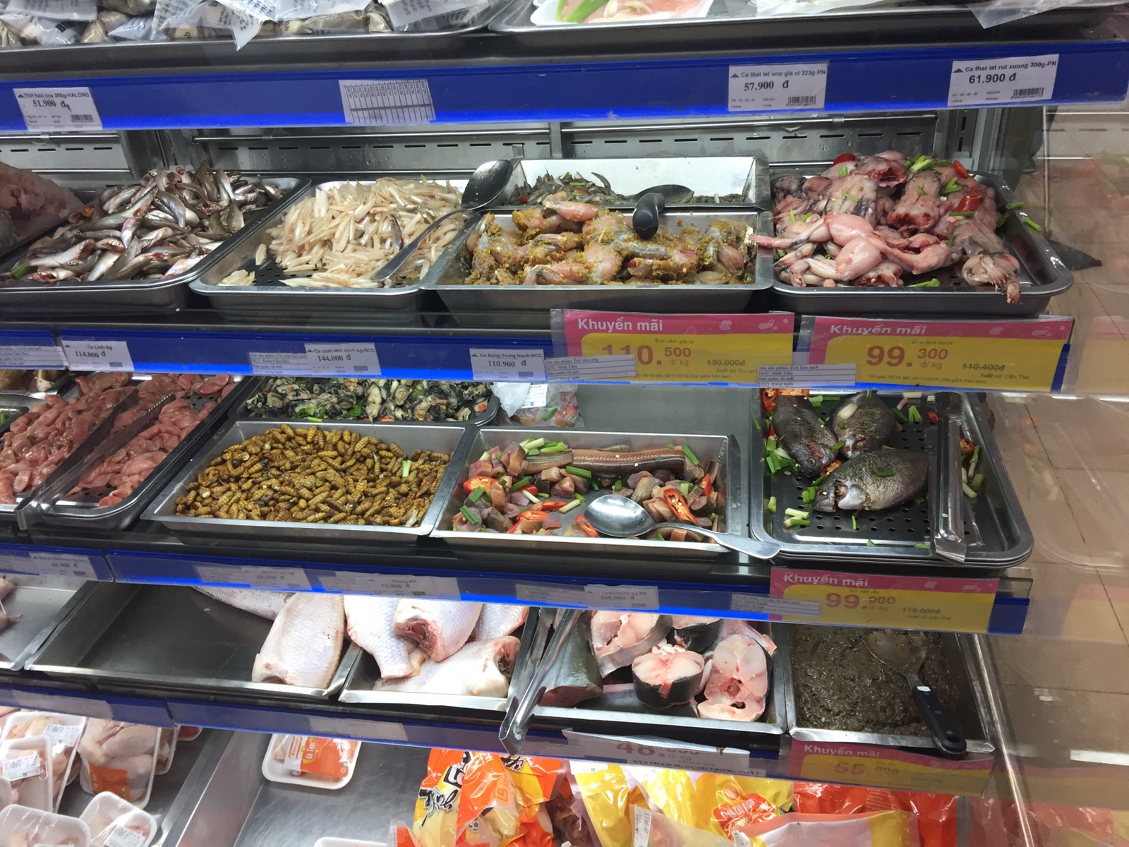 Im Supermarkt gibt es eingelegte Frösche und Würmer.