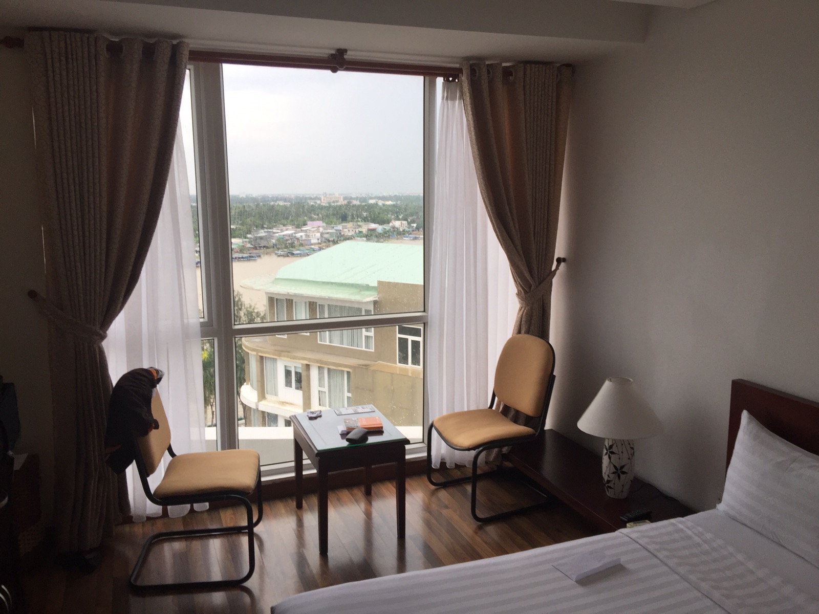 Unsere Ohren haben geklingelt. Hier fahren die auch sehr merkwürdig. Der langsamste prinzipiell in der Mitte und beim auf die Fahrbahn fahren oder links abbiegen wird sowieso nicht geguckt ob jemand kommt. Aber auch das haben wir überstanden und sind jetzt in Chau Doc. Unser Hotel, das Trung Nguyen Hotel, haben wir dieses mal aus dem Loose Reiseführer. Es ist die Empfehlung des Looses aber doch sehr einfach. Aber für 15€ die Nacht OK. Auch liegt es sehr Zentral. Der Lautstärke nach zu Zentral.