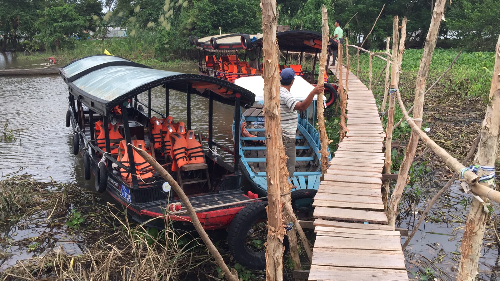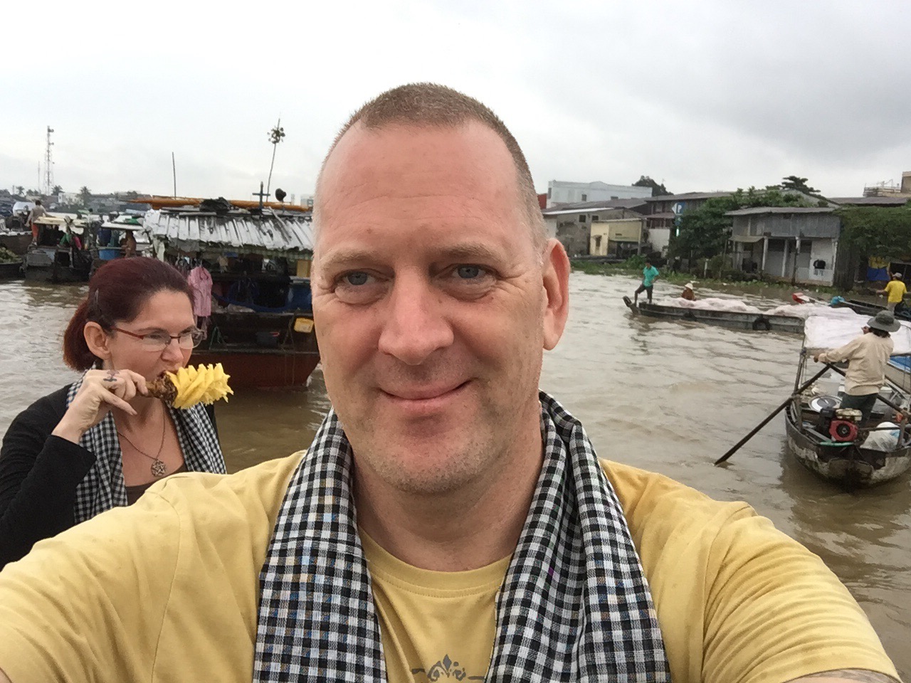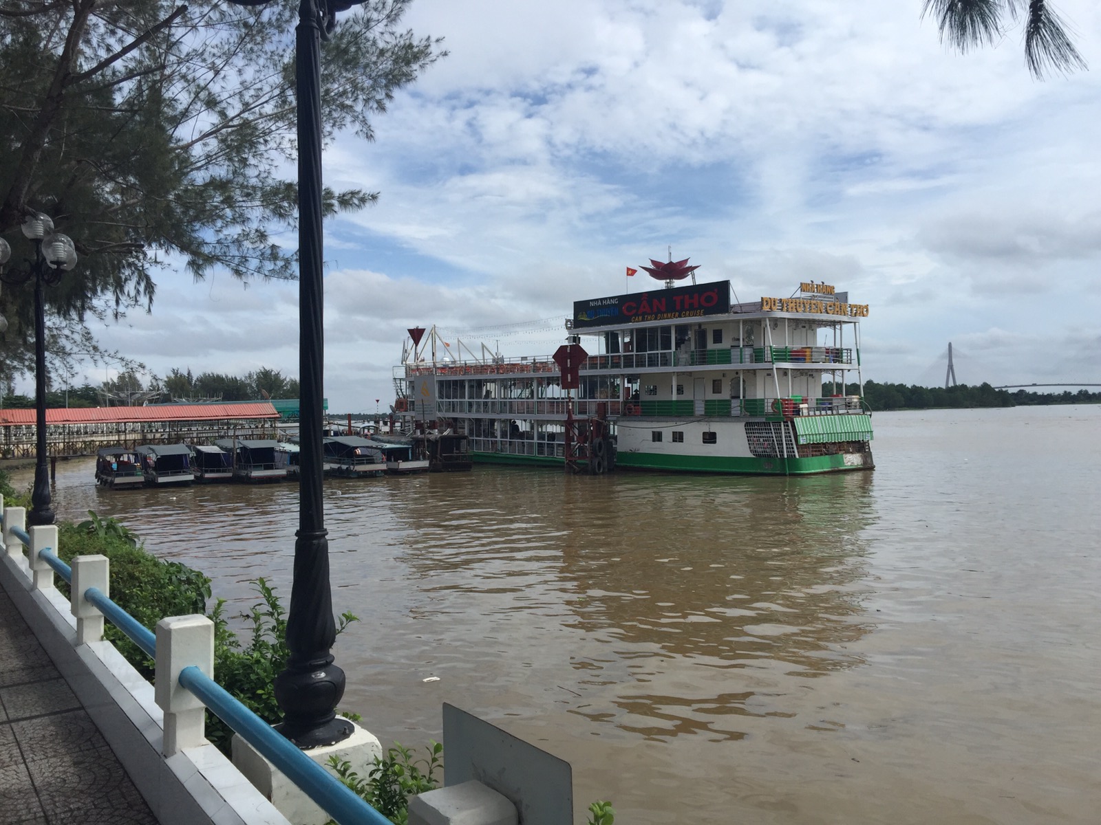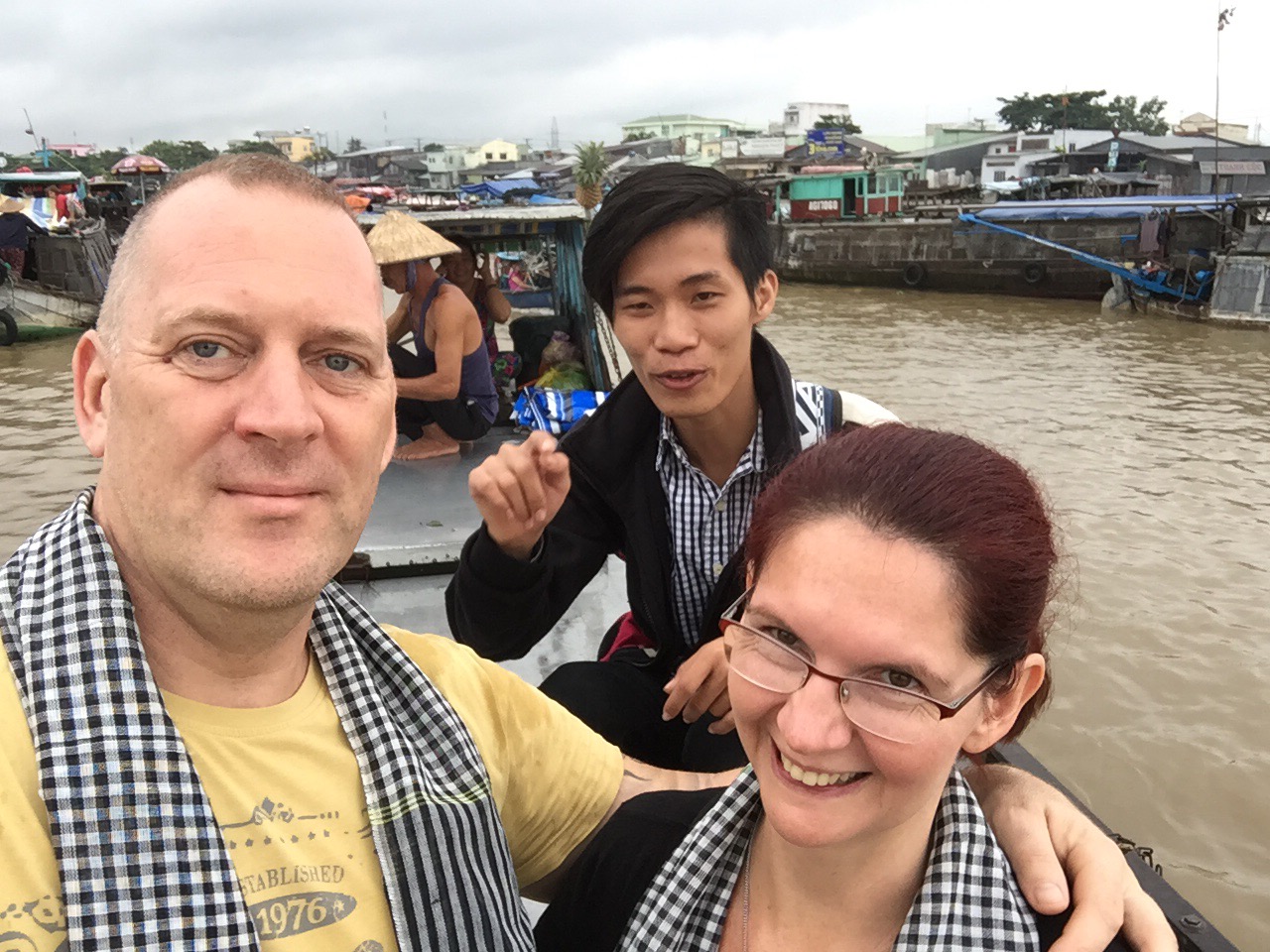 Um 6 Uhr war die Nacht vorbei. Frühstück und dann auf zum Bus nach Can Tho. Dies ist die größte Stadt im Mekong Delta und Ausgangspunkt für viele Touren. Aber schon die ersten Kilometern waren abenteuerlich. An der morgendlichen Rushhour in Saigon würden wir alle verzweifeln. Und dann die Überraschung, statt eines großen Busses wurden wir mit einem Miniluxusbus nach Can Tho gefahren. Das erklärte auch den hohen Preis von 16$. Aber es hat alles gut funktioniert und wir waren gegen 13 Uhr im Hotel Kim Tho direkt am Mekong.