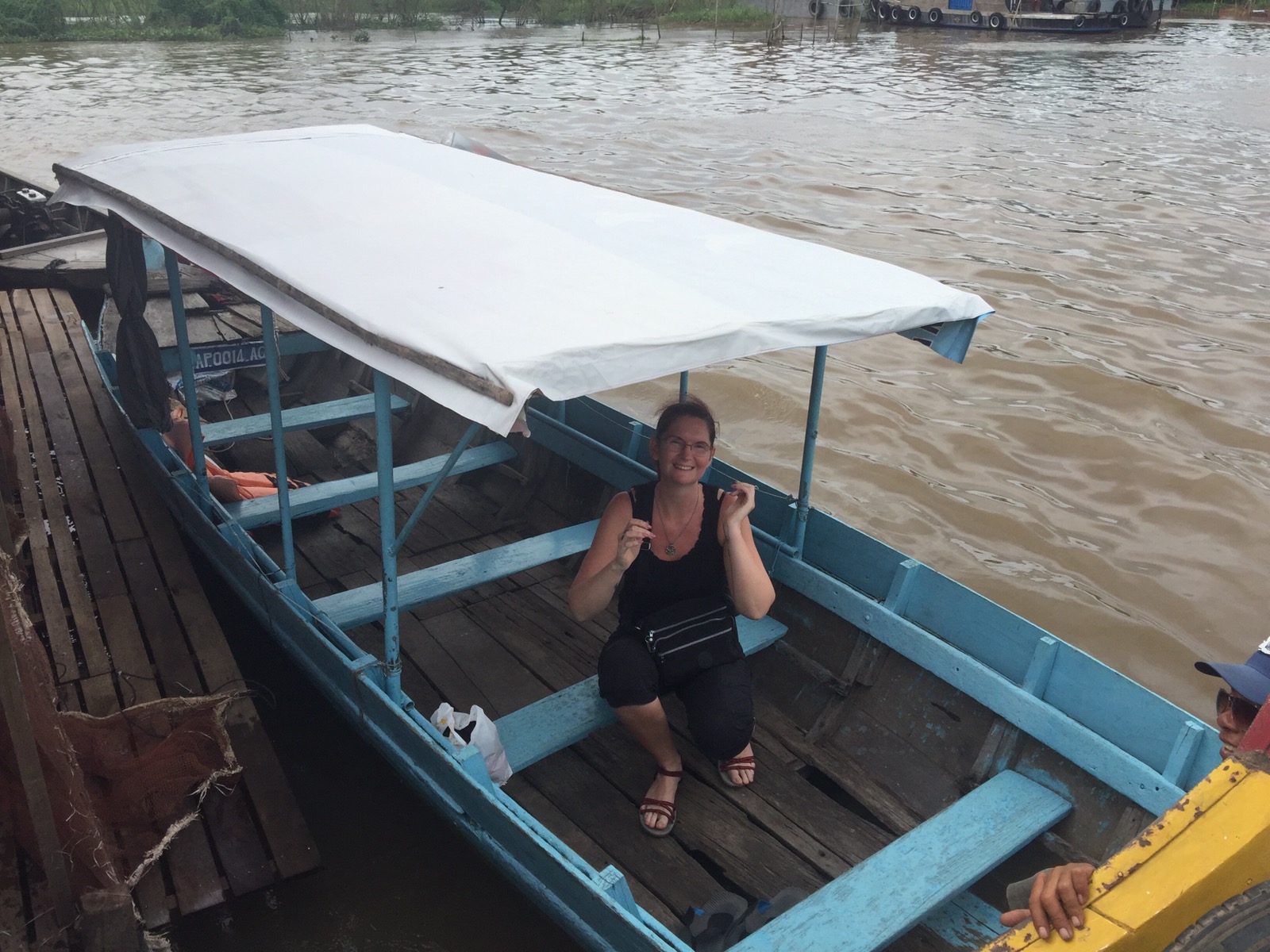 Dann sind wir alle in ein anderes Boot umgestiegen, welches uns zur kambodschanischen Grenze gebracht hat und mit dem es weiter nach Phnom Penh gehen soll. An der kambodschanischen Grenze wurden unsere Pässe zur Visareinklebestation gebracht, von dort haben wir die Pässe dann zurück bekommen. Nun durften wir mal selber tätig werden. Wir wurden zu einem Schalter gebracht, wo die Finalen Stempel in den Pässen eingebracht wurden. Jetzt sind wir offiziell in Kambodscha eingereist. Alles ging super von statten. Das war einer der leichtesten Grenzübertritte die wir je hatten.