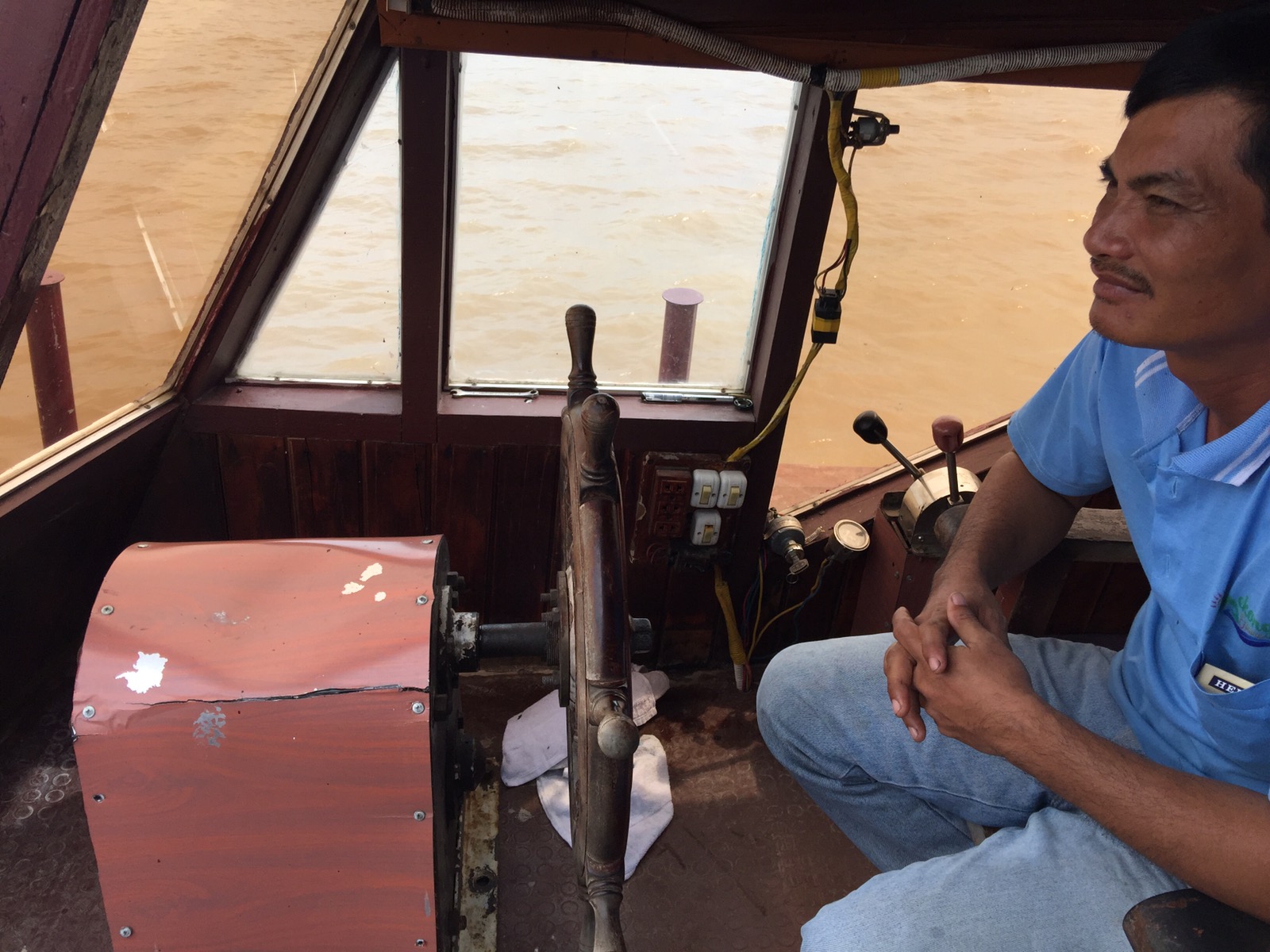 Nach einer Stunde fahrt haben wir den Hauptstrom erreicht. Ab hier ist es auch kein Delta mehr. Hier ist der Fluss auch so breit, das man am Ufer nicht mehr viel erkennen kann. Eine weitere halbe Stunde später haben wir die vietnamesische Grenze erreicht. Hier sind wir ausgestiegen und der, der die Pässe eingesammelt hat, hat unsere Ausreisestempel besorgt und wir saßen ca. 15 Minuten in einem Wartesaal.