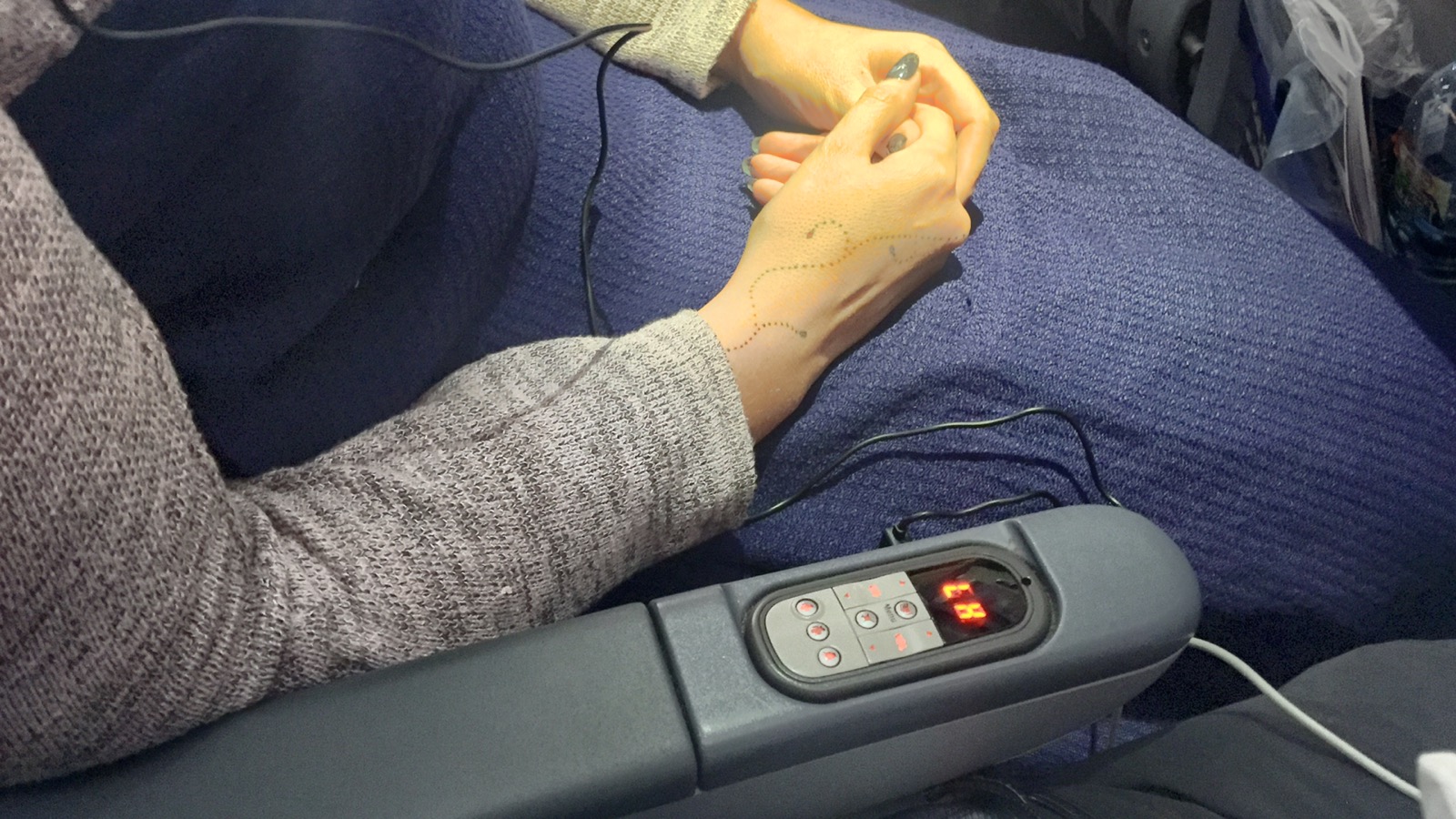 Eine Sache aber ging gar nicht. Die Bedienung für den Bildschirm war in den Armlehnen. Immer wenn ich die Ellbogen aufgestützt habe, sind der Bekky beim Film gucken die Ohren weggeflogen.