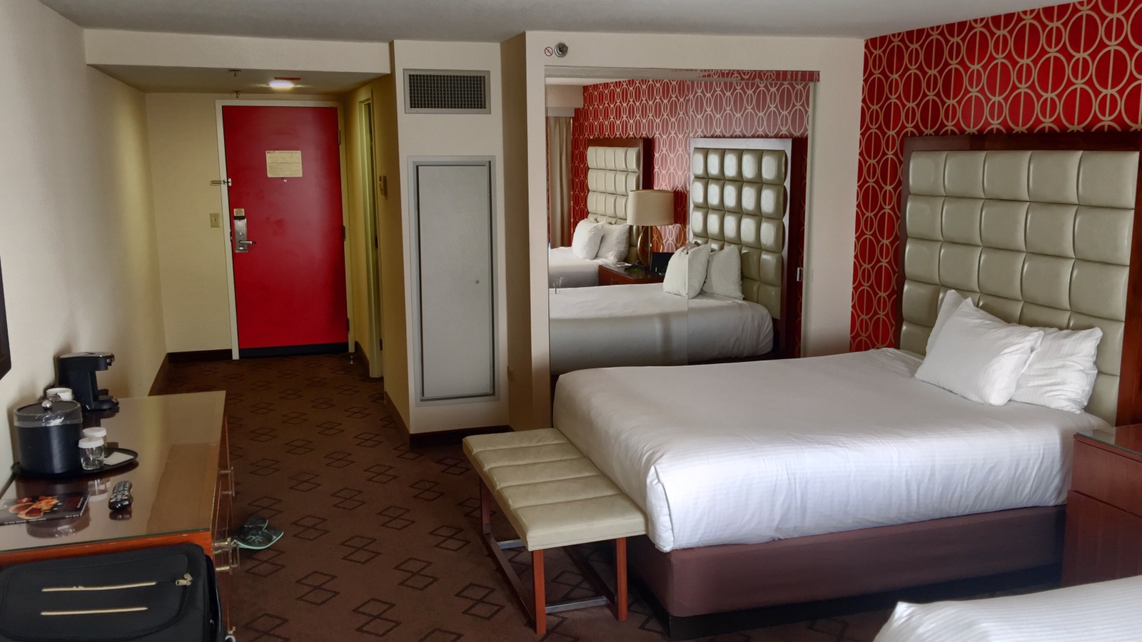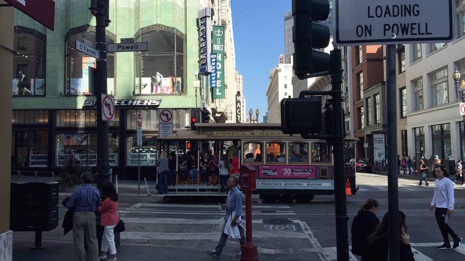 Der Check In war schnell und kühl. Für 25$ pro Nacht konnten wir ein Upgrade bekommen. Haben wir aber abgelehnt. Das Hotel war eh schon zu teuer. Aber die Lage ist gut. Fast vor der Tür fahren die Cable Cars und der Hop On Hop Off.