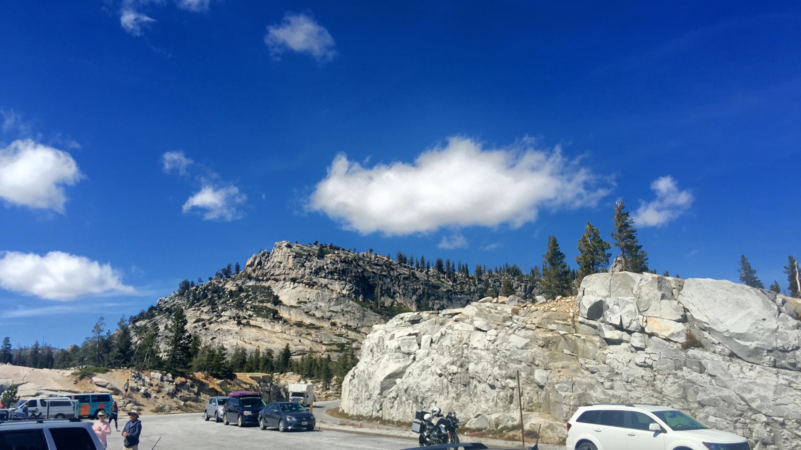 Im Valley selber hat es uns nicht sonderlich gefallen. Alles voller Autos und Menschenmassen. An vielen Stellen sind dazu noch Straßenbauarbeiten. Auch sehen tut man zwischen den Bäumen auch nicht viel. Das Valley ist mehr zum Wandern gedacht. Viele Leute kommen für ein paar Tage her um mehrere Wanderwege abzulaufen. Wir sind nur einen Tag hier, also weiter zum nächsten Aussichtspunkt, dem Olmsted Point.