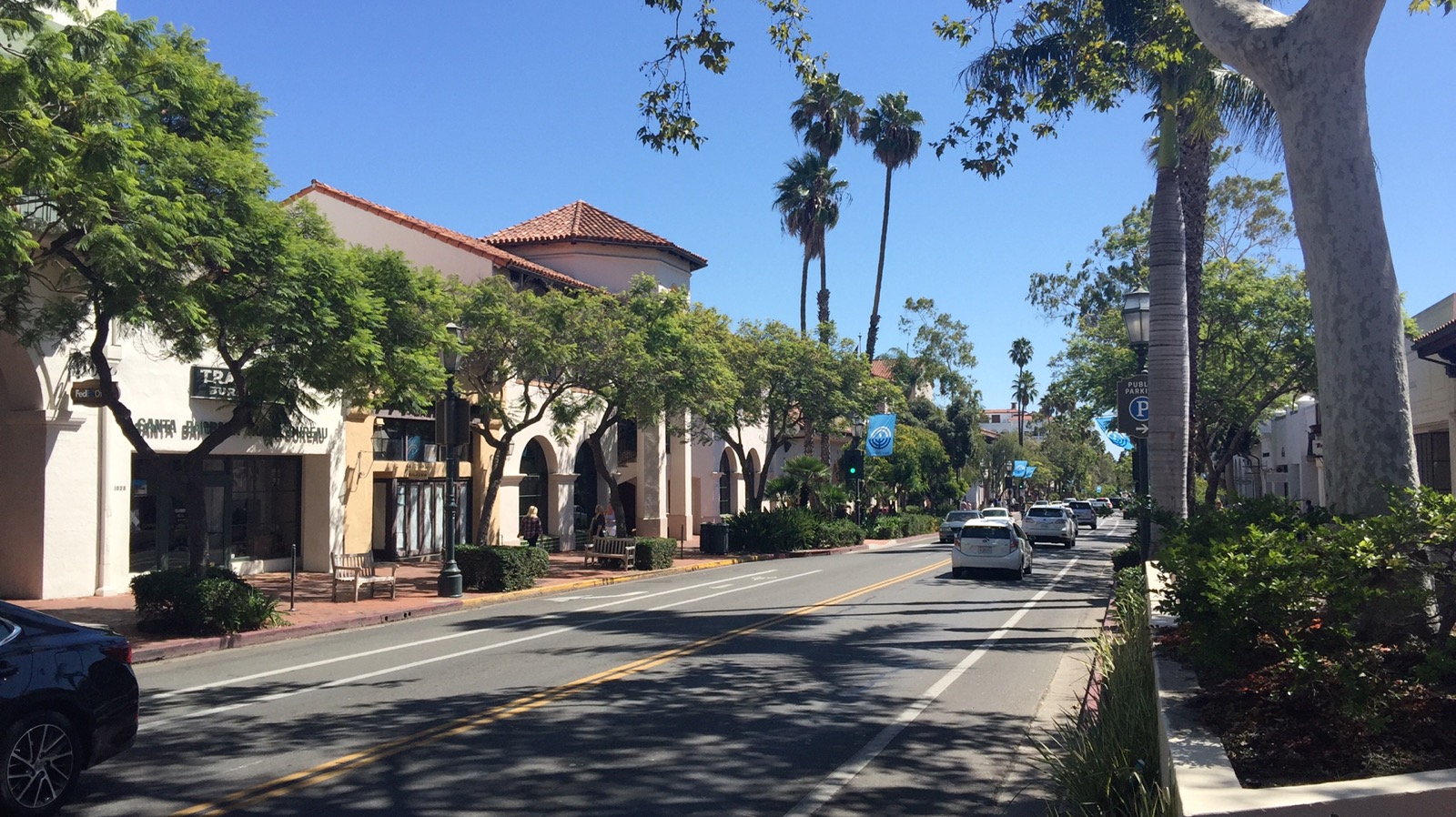 Zuerst konnten wir die Innenstadt von Santa Barbara nicht finden. Es ist hier alles sehr schlecht ausgeschildert. Doch dann waren wir plötzlich mitten drin. Und wir müssen sagen, das diese Stadt uns sehr gut gefällt. Tolle Lage am Meer mit den Häusern am Hang und ein angenehmes Klima.