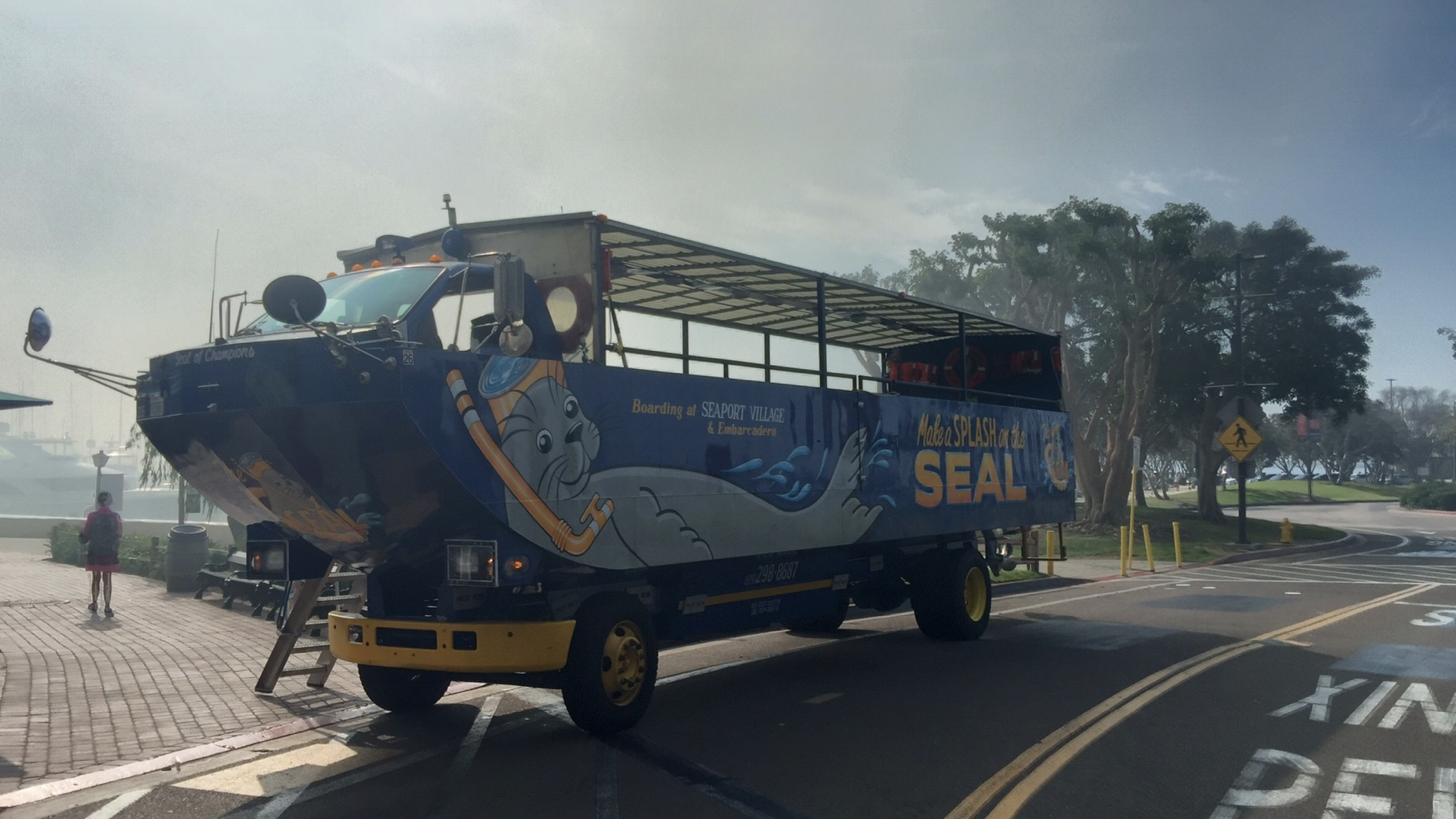Wir sind früh raus. Wir wollen heute mit dem Hop On Hop Off, hier Old Town Trolley genannt, die Stadt erkunden. Wir haben uns für ein Doppelpack entschieden. Zuerst mit einem Amphibienfahrzeug durch die Buch und anschließend mit dem Trolley durch die Stadt. Auf dem Weg zum Startplatz sahen wir, wie es aus einem Schiff raus qualmt. Kurze Zeit später auch überall Sirenen und Feuerwehr. Zum Glück war es ein alter Kahn ohne Besatzung.
