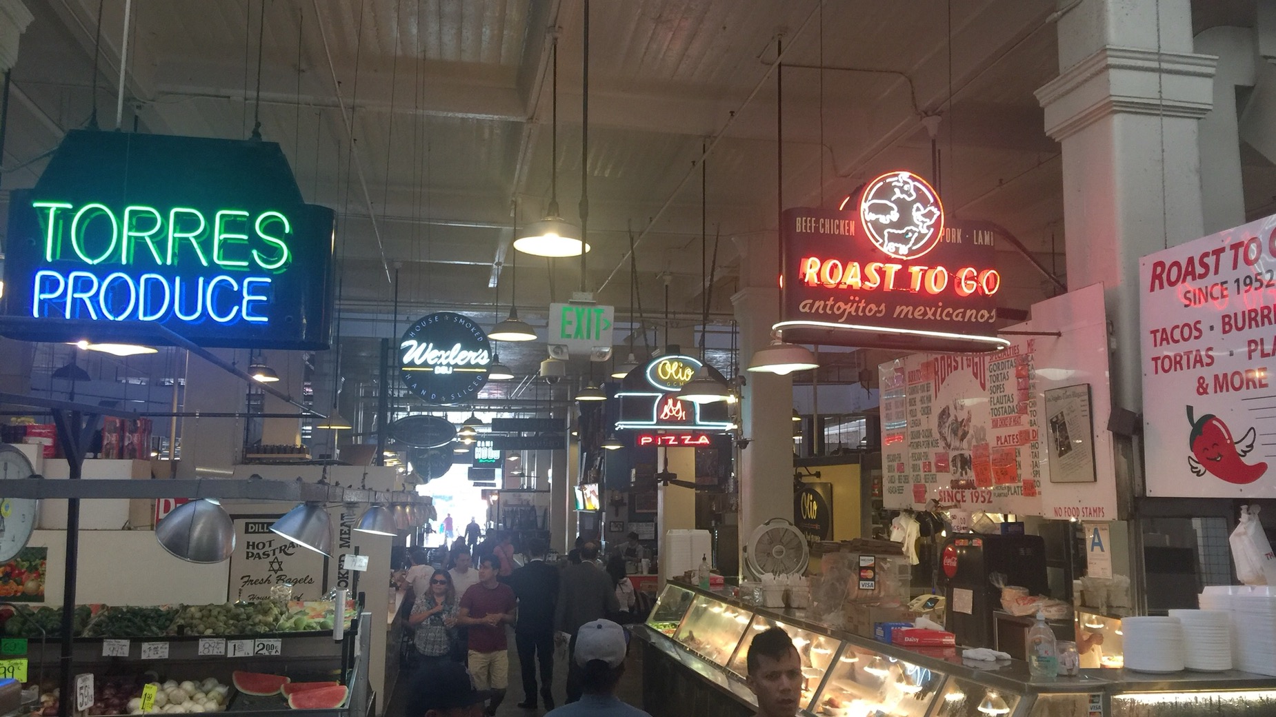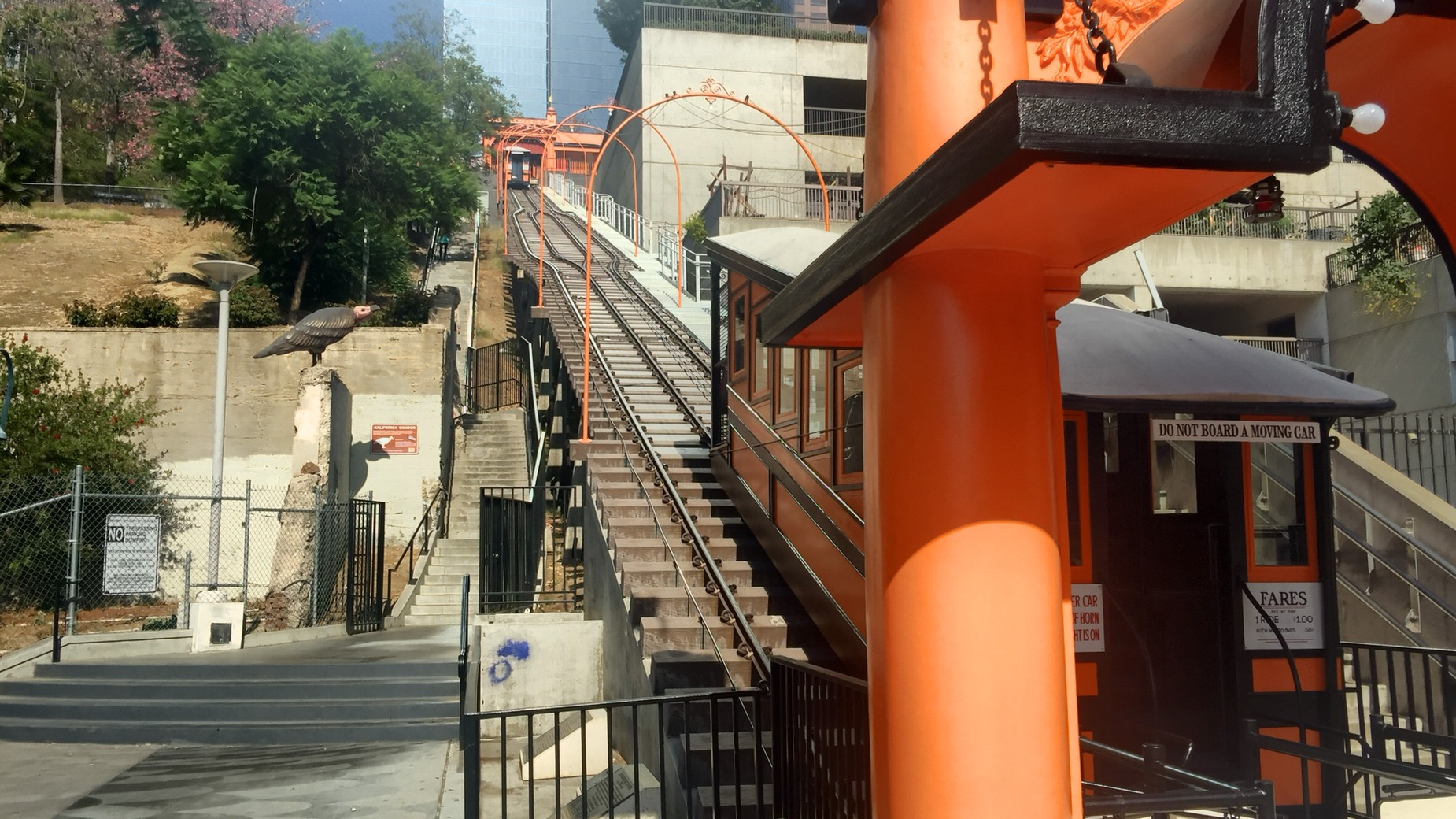 Heute wollen wir mal anschauen was die „Schönen und Reichen“ so treiben. Zuerst einmal klein anfangen und nach Downtown ins Bankenviertel gefahren. Aus der Metrohaltestelle 7th Straße ausgestiegen um die Ecke gegangen und ein Typen gesehen der sich gerade den Arsch abputzt. OK, wir fahren weiter. Ich hoffe nicht, dass das ein Banker war. Nächster halt Pershing Square. Hier findet man die kürzeste Strecke einer kommerziellen Bahn, den Angels Flight. Sieht ganz nett aus. Gegenüber die große Markthalle. Dort kann man wunderbar Essen. Meistens asiatisch aber auch deutsch und der Mexikaner darf auch nicht fehlen.