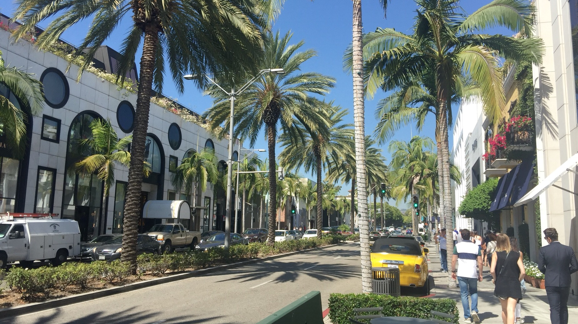 Nun soll es aber zu einer richtig feinen Adresse gehen. Dem Rodeo Drive. Von Downtown bis dort hin sind es zuerst ein paar Stationen mit der Metro und dann noch ne gute halbe Stunde mit dem Bus. In LA kommt man nicht einfach schnell von A nach B. Sind aber gut angekommen in Beverly. Man muss zugeben, ein wenig sauber sieht es schon aus und es gibt ne Menge Luxusläden vor dem teuere Autos parken. Beeindruckt hat das uns nicht.
