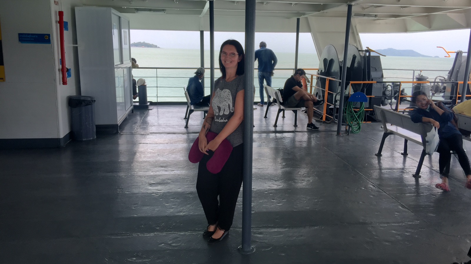 Wir haben einen Flug von Surathani nach Bangkok gebucht. Der Flug mit Bangkok Airways direkt von Samui aus ist mehr als doppelt so teuer wie der Flug vom Festland aus. Aber man muss mit einem Boot vorher rüber. Wie immer wurden wir pünktlich vom Hotel abgeholt. Und obwohl wir schon so oft auf Samui waren, haben wir erst jetzt mitbekommen, dass Samui einen Busbahnhof hat. Von hier fahren VIP Busse nach Bangkok, Phuket und anders wohin. Wir sind aber nur bis nach Surathani mit den Bus. Dachten wir jedenfalls. Es wurde eine Reise mit sehr vielen Verkehrsmitteln. Es hat alles super funktioniert. Aber mit mehr finanziellen Aufwand wären wir in 3 Stunden in Bangkok gewesen. So waren es 11 Stunden. So hatten wir dieses Sammelsurium an Verkehrsmitteln.