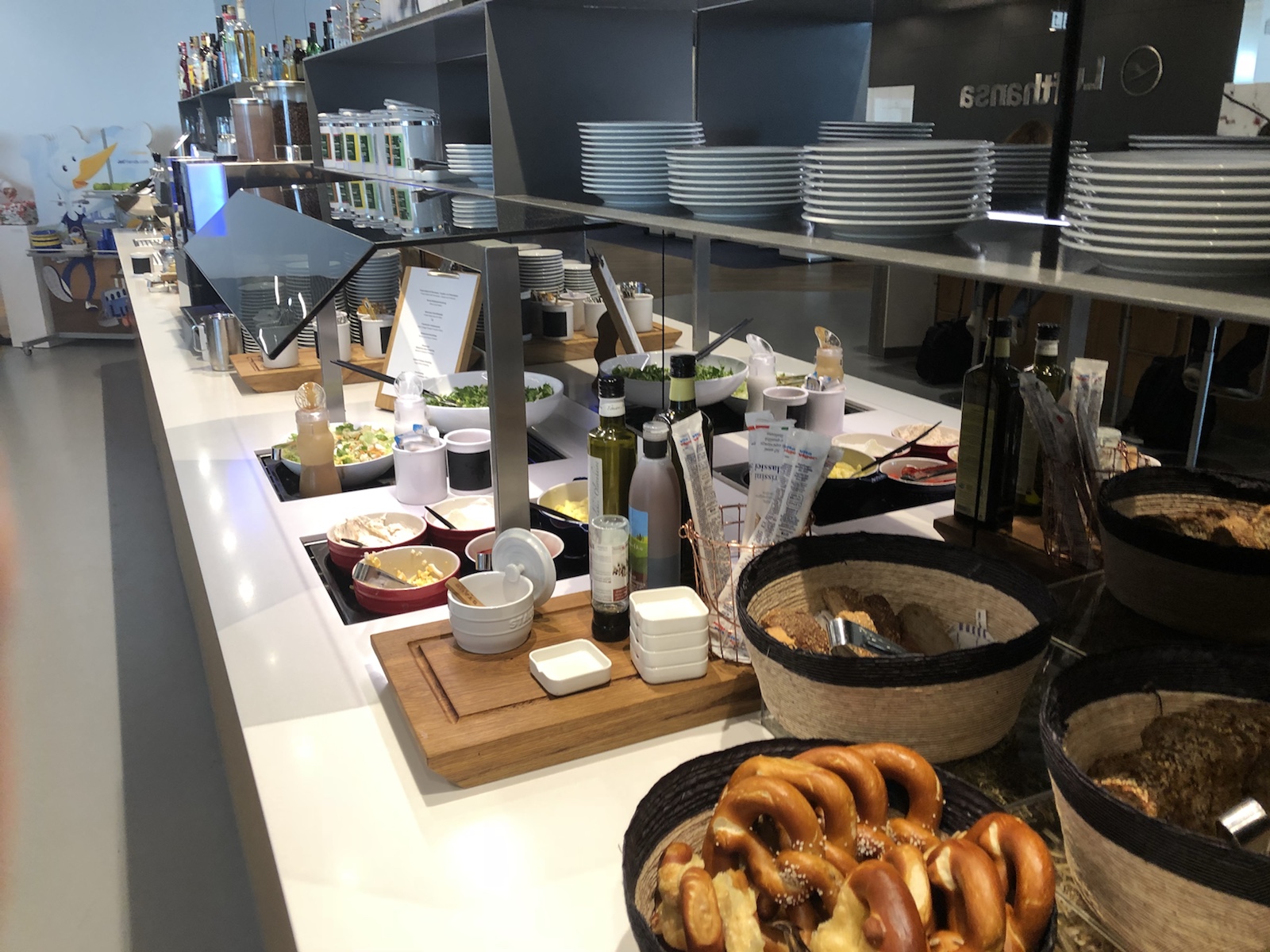 Das Einchecken für den Flug geht bei Lufthansa entweder online oder am Automat. So auch bei Business Class. Schade eigentlich. Für die Sicherheitskontrollen gab es aber eigene Abteilungen. Alles lief entspannt und ruhig und ohne anstehen ab. Dann sind wir in die Lufthansa Lounge gegangen. Hier stehen einem kostenlose Getränke und Snacks zur Verfügung. Und bequemer warten auf seinen Flug kann man kaum. Die Zeit verging auch super schnell.