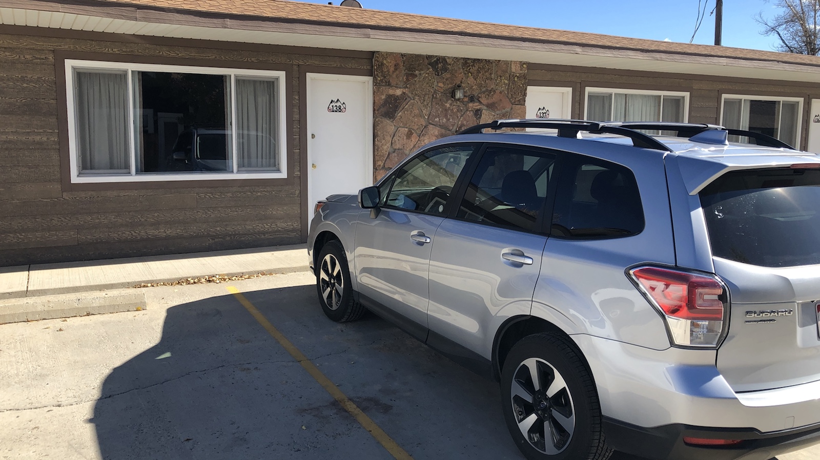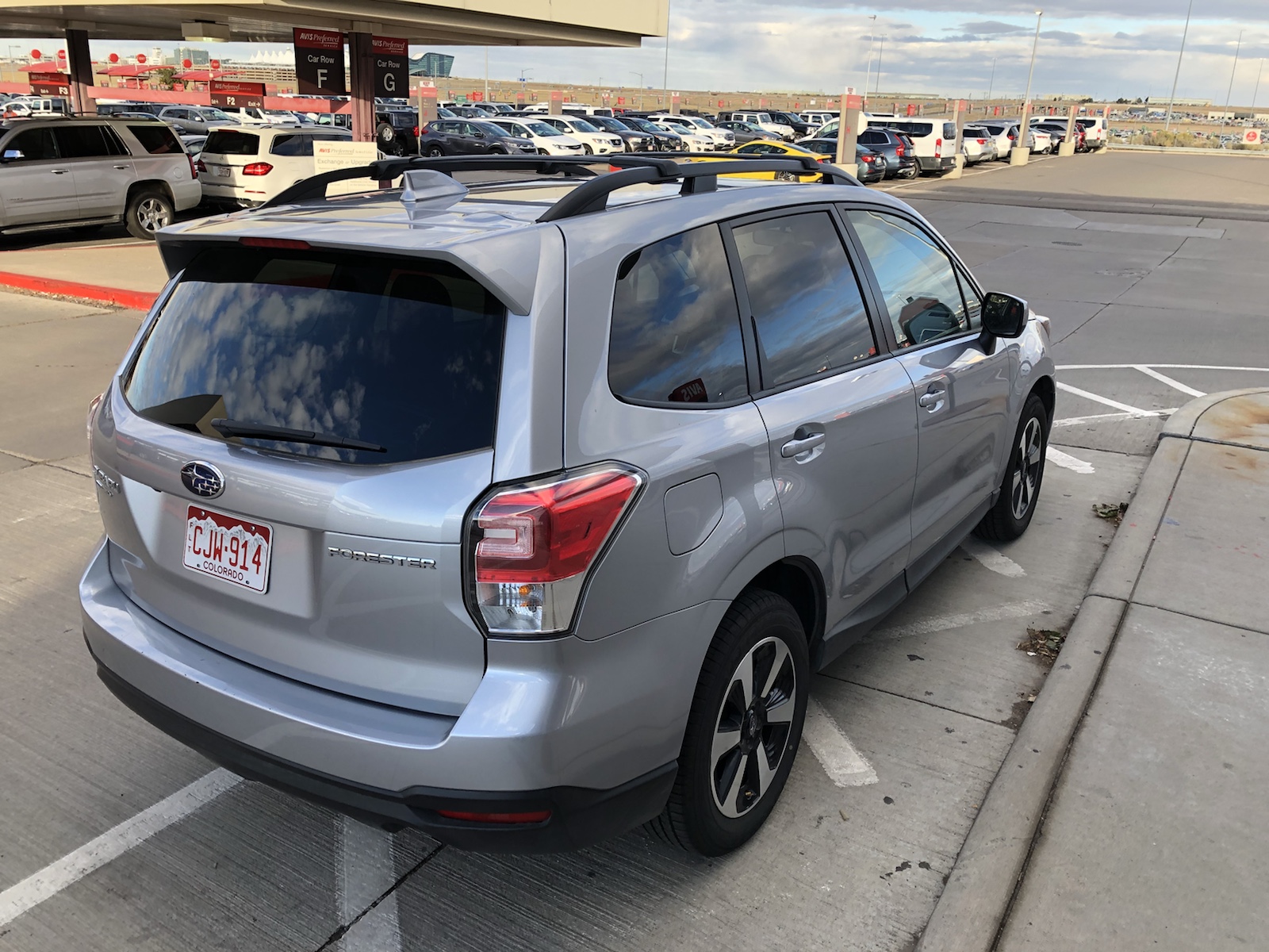 Fast pünktlich sind wir in Denver gelandet und kamen auch sehr schnell aus dem Flugzeug raus. Weil wir in letzter Zeit schon in den USA waren, konnten wir wieder die vereinfachte Immigration in Anspruch nehmen. Das heißt, an einen Automaten gehen, den Pass scannen, ein paar Fragen beantworten und dann doch noch zu einem Immigrationsmenschen gehen. Der kontrollierte noch mal alles und 15 Minuten nach der Landung waren wir in die USA eingereist. Auf die Koffer haben wir länger gewartet. Dann die Rent a Car Stationen suchen. Kein Hinweis gefunden. Ich habe dann auf Google Maps geschaut. Avis war 2 Meilen weg. Das war jetzt blöd. Wie kommen wir da hin? Ein Taxi? Wir gehen Richtung Ausgang um ein Taxi zu nehmen. Da sah Bekky auf einem Schild den Hinweis das es Shuttlebusse zu den Autoverleihstationen gibt. Vor dem Flughafen gab es einen eigenen Bussteig nur für Leihwagenfirmen und jede Firma hatte einen eigenen Bus. Der von Avis war ziemlich weit weg. Kurz bevor wir ihn erreicht hatten fuhr der Bus weg. Ich gleich auf die Straße gesprungen um den Bus ein Zeichen zu geben. Er hat das Zeichen verstanden und wir durften mit. Nach mehreren Minuten waren wir bei Avis. Wir hatten in Deutschland über Miles & More ein Auto vorbestellt. Es sollte ein SUV sein. Wir konnten uns ein Auto aussuchen. Wir haben uns für ein Subaru entschieden.