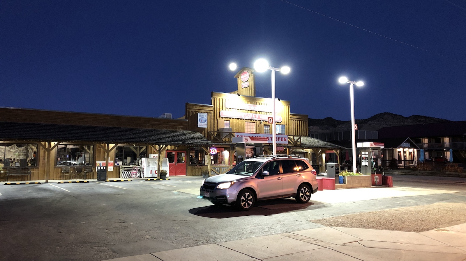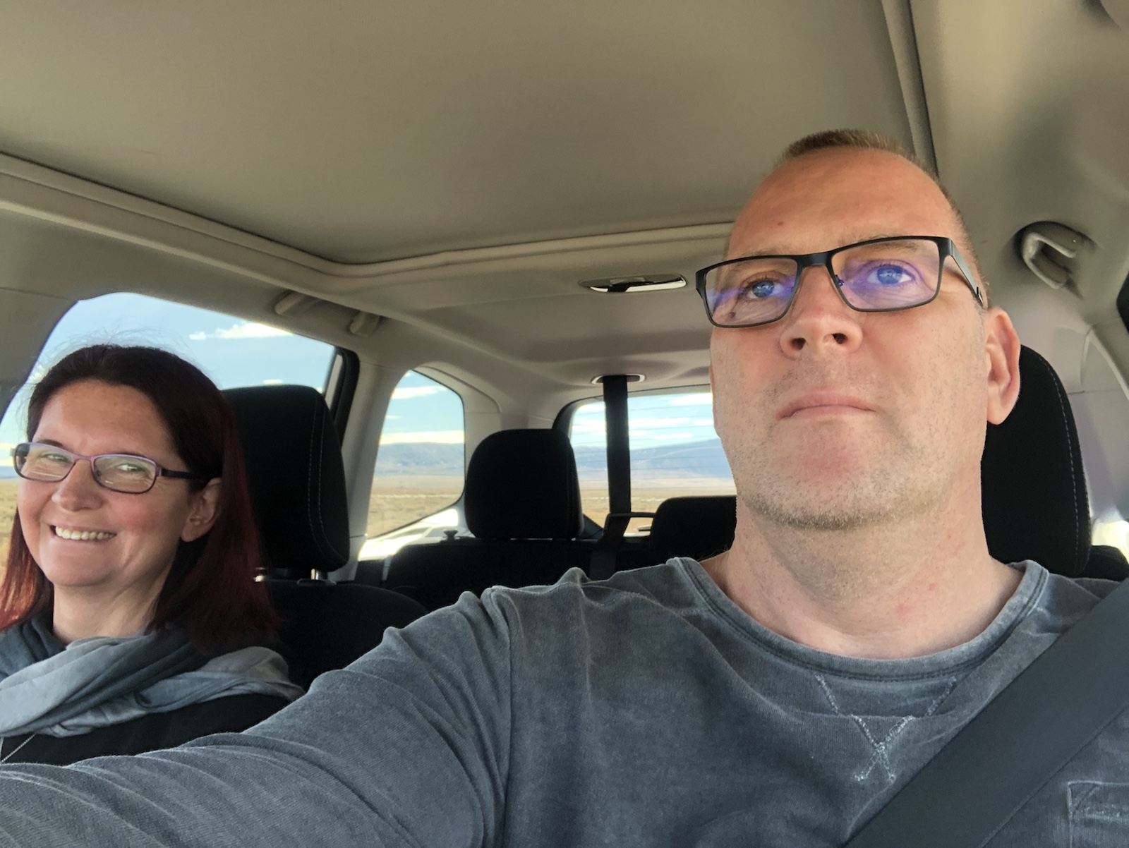 Die Fahrt hier her hat knapp 5 Stunden gedauert. 300 Meilen kaum befahrende Autobahn mit Tempo 75 mph (ca. 120kmh) und durch öde Landschaft. Gut das unser Subaru alle möglichen Assistenten hat. Er hat die Geschwindigkeit und die Spur gehalten und wenn vor mir ein Fahrzeug war, das langsamer gefahren ist, ist der Subaru auch langsamer geworden. Bis ich den Blinker gesetzt habe und das Lenkrad ein wenig nach links gedreht habe. Dann ist der Subaru wieder schneller geworden. Ist schon praktisch bei diesen Straßen und Entfernungen.