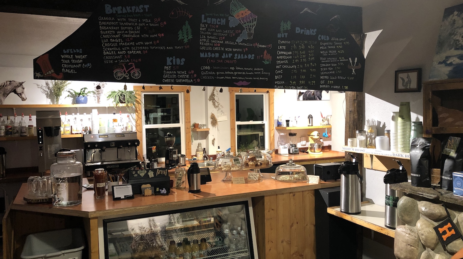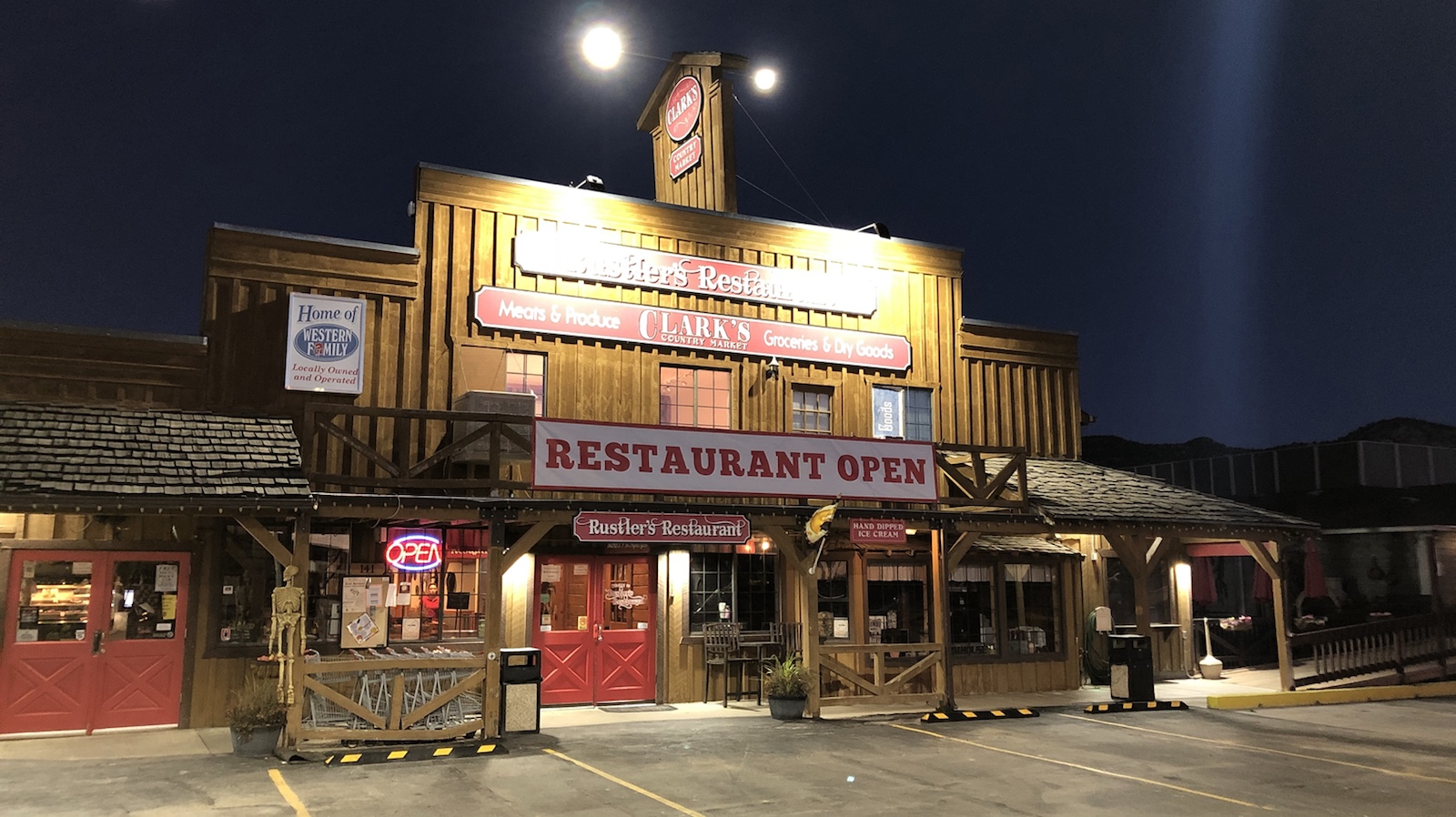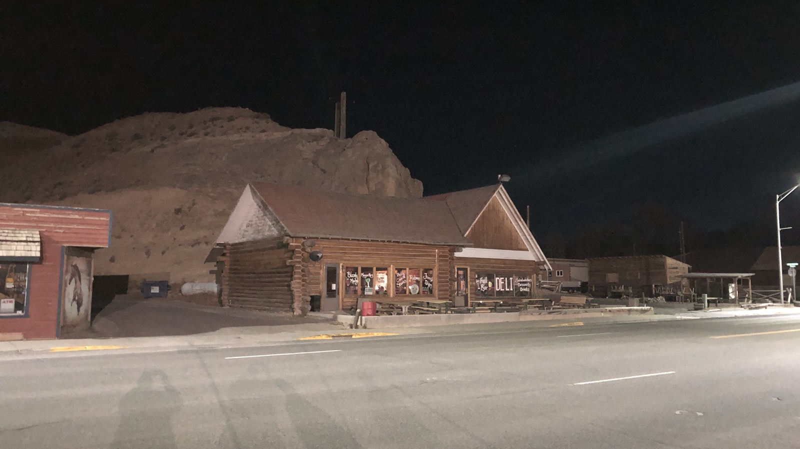 Schräg rüber über die Straße ist auch ein nettes Lokal. Hier haben wir wohl unser teuerstes Abendessen aller Zeiten gegessen. Eine Vorspeise, 2 Hauptgerichte, 2 Nachspeisen und 2 Bier für umgerechnet 75€. Und es war nur ein einfaches Restaurant. Aber hier in der Abgeschiedenheit können sie es nehmen. Das nächste Restaurant ist 20 Meilen entfernt.