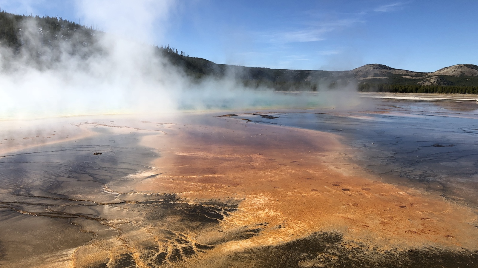 Wir sind dann über den Grand Teton NP zum Yellowstone Nationalpark gefahren. Am Eingang vom Grand Teton NP haben wir uns den Annual Pass für 80$ gekauft. Damit kann man ein Jahr lang alle stattlichen Nationalparks besuchen. Wenn man bedenkt, das der Eintritt meistens 25-30 $ kostet lohnt es sich auf unserer Tour schon. 50$ hätten wir jetzt schon für die beiden Parks bezahlt.