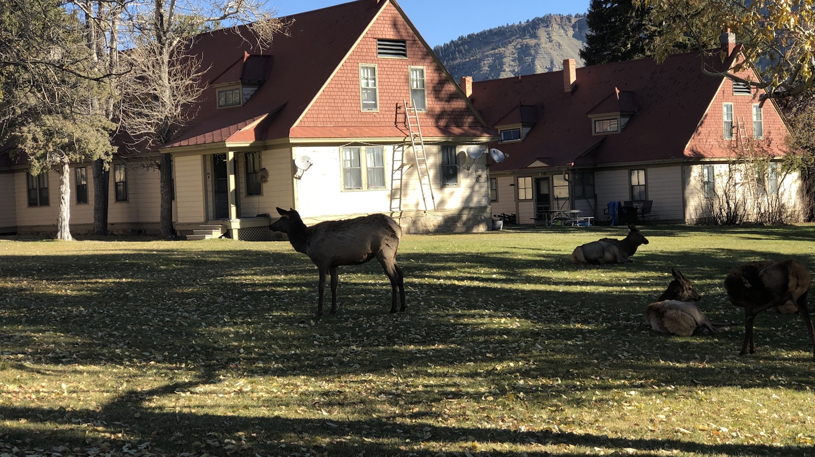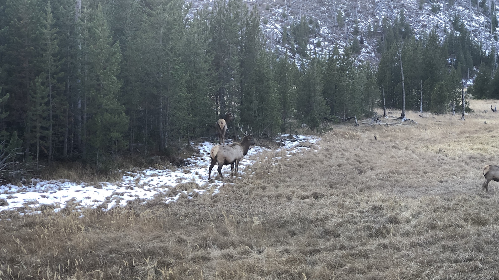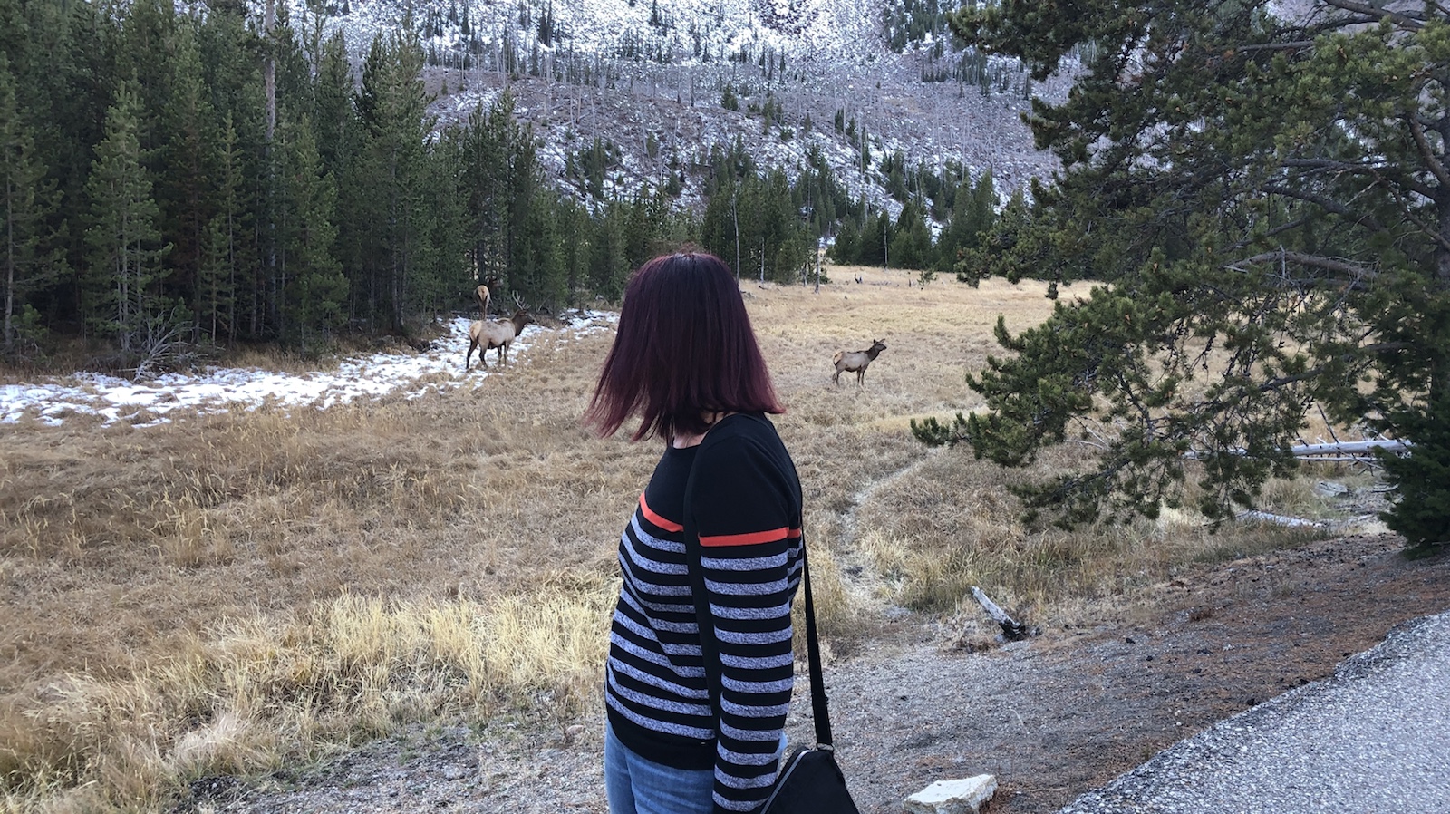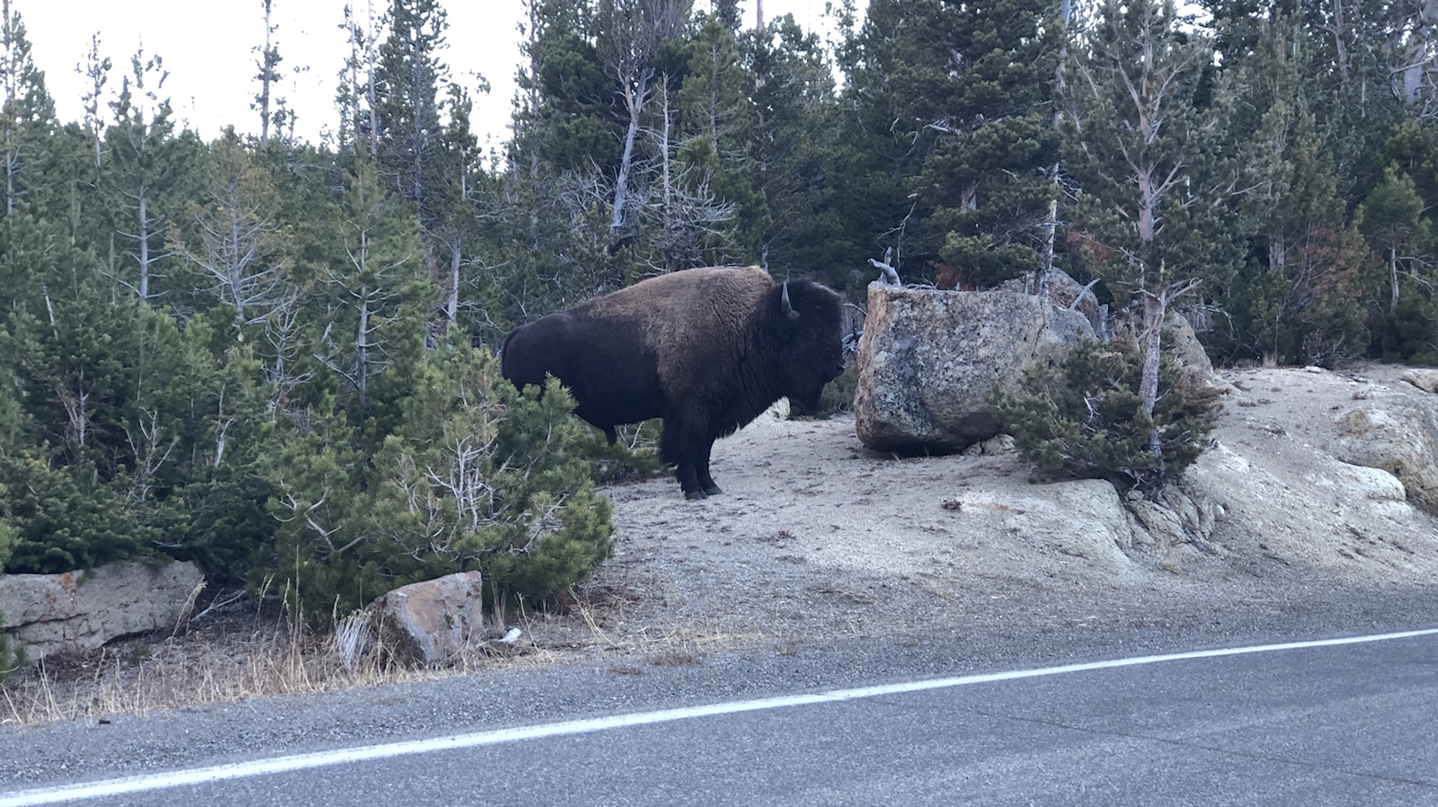 Auf der Fahrt zu unserem Hotel konnten wir das erste mal hier im Park Tiere sehen. Wir hatten eigentlich geglaubt, das hier hinter jeder Kurve Bären, Bisons und Wölfe rumstehen. Aber wir haben außerhalb vom Park mehr Tiere gesehen.