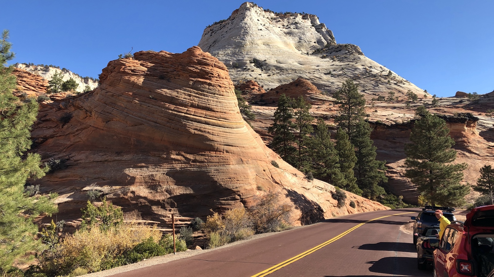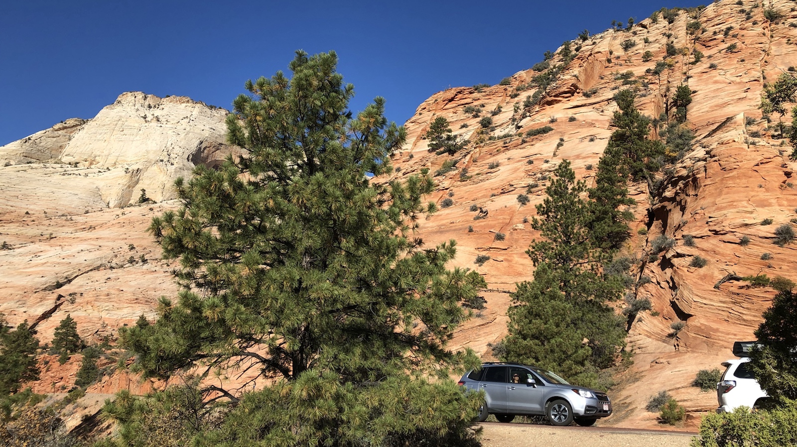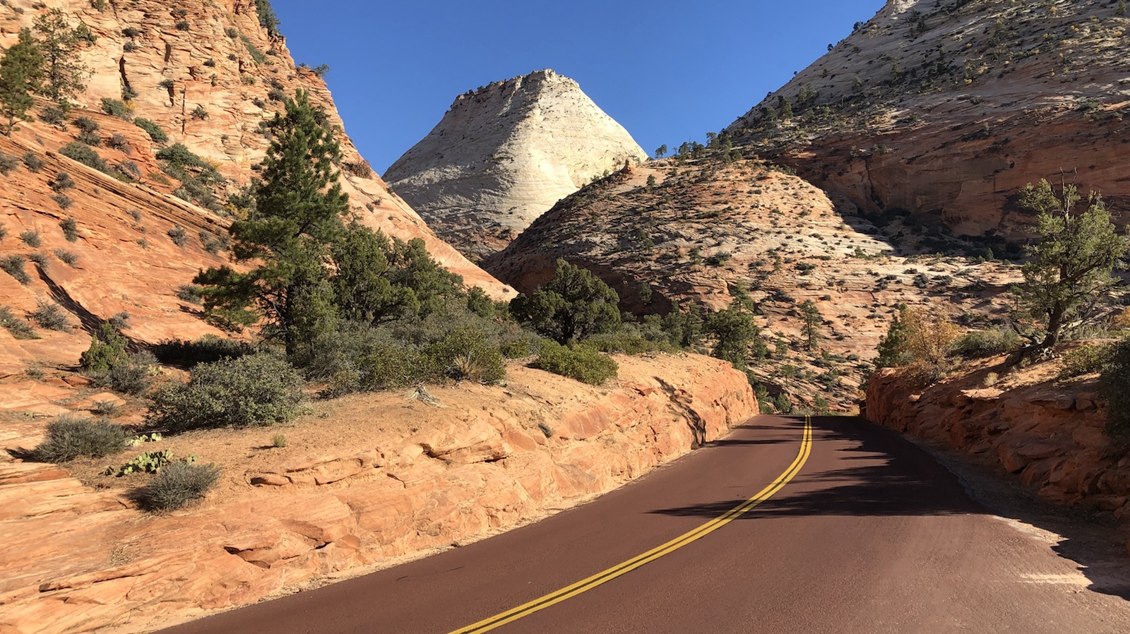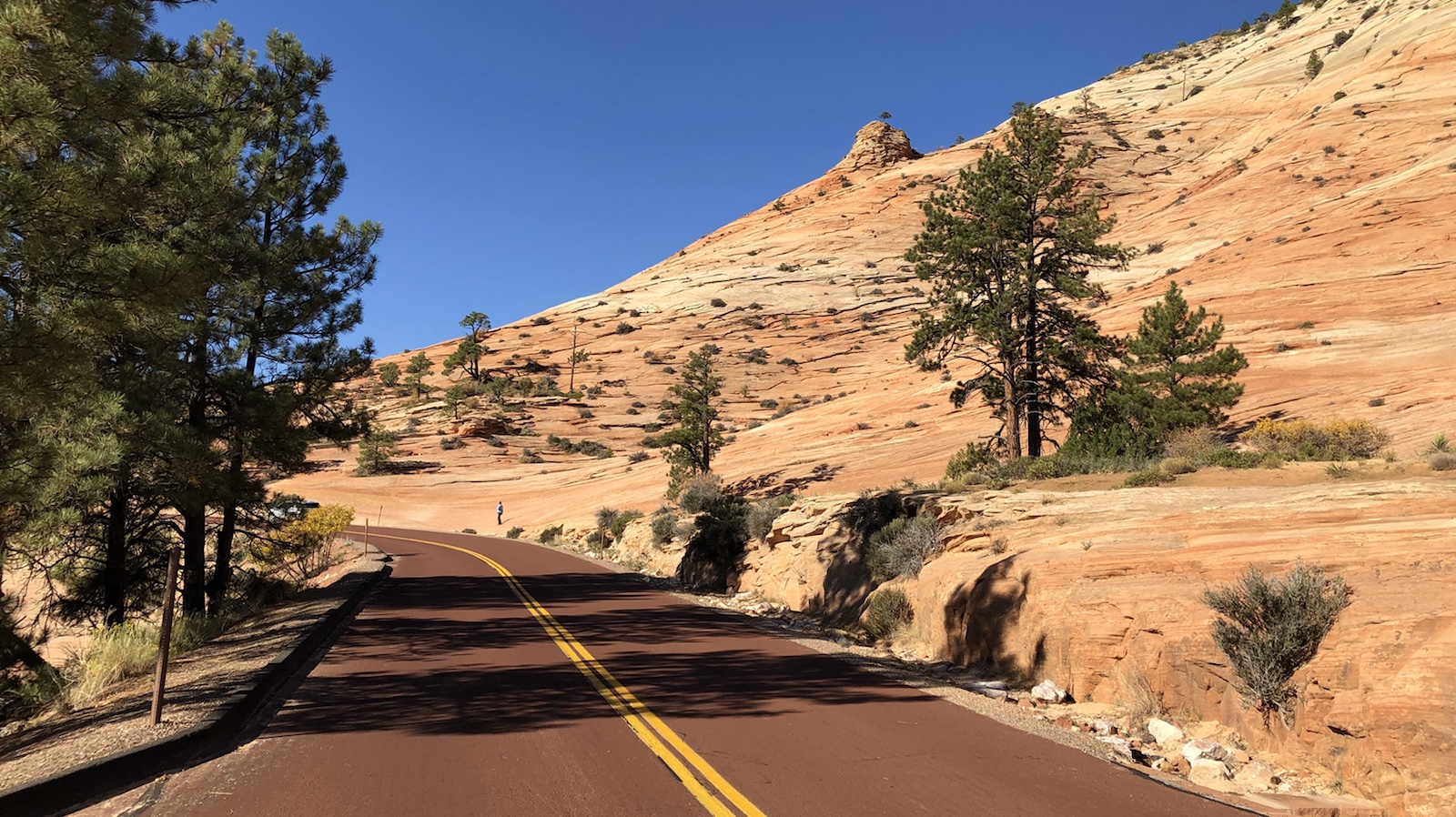 4.30 Uhr war die Nacht vorbei. Wir wollen zum Bryce Canyon. Dieser liegt in Utah und soll einer der schönsten Ausblicke haben. Zuerst aber einen Kaffee getrunken und 5.30 Uhr aus dem Tropicana ausgecheckt. Die erste Zeit war sehr eintönig zu fahren. Draußen war es noch dunkel und wir waren müde. Nach einer Stunde an einer Raststätte einen Kaffee geholt. Amerikanischer Kaffee schmeckt aber nicht. Haben ihn wieder weg gekippt. Auf den Weg von Las Vegas zum Bryce Canyon kann man durch den Zion Nationalpark fahren. Dieser ist relativ klein aber für Wanderer sehr gut geeignet. Wir sind nur durch gefahren und haben an Viewpoints gehalten. Wenn wir den Annual Pass nicht hätten, wären wir Drumherum gefahren. Weil nur zum durchfahren lohnt der Eintrittspreis nicht. Aber so konnten wir ein paar schöne Bilder machen.