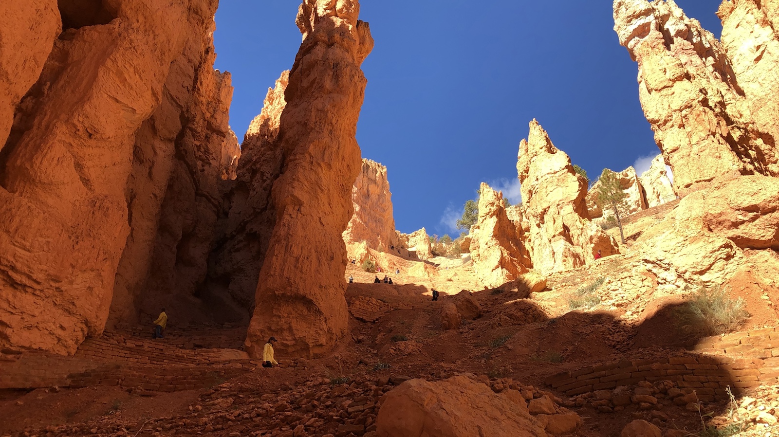 Vom Zion NP war es noch eine gute Stunde zum Bryce Canyon. Die Fahrt geht teilweise durch eine schöne Natur. Am Eingang zum Bryce NP reichte wieder unser Annual Pass zum Eintritt. Wir sind gleich zum Sunset Point gefahren. Von dort aus geht ein Wanderweg in den Canyon rein. Ich habe vorab gelesen, das es etwas steil runter gehen soll. Irgendwie hatte ich der Bekky vergessen zu sagen, das es etwas mühselig sein könnte, den Wanderweg runter und wieder hoch zu kommen. Wir haben es aber trotzdem gut geschafft. Es hat sich aber voll gelohnt. Der Anblick dort ist wirklich ein Highlights. Einfach traumhaft.