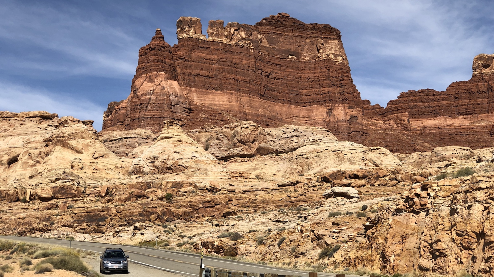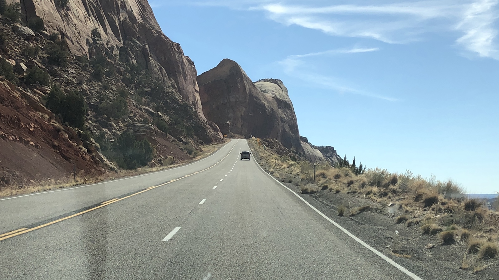 Heute ist der Weg das Ziel. Wir wollen die Highways 12, 24 und 95, die als Scenic Routen gelten, fahren. Die Straßen führen in Utah durch einsame Gebirge und Täler. Wir durften deshalb auch nicht zu zeitig los, da es erst gegen 8 Uhr richtig hell wird. Als Endpunkt ist der Ort Moab geplant, von den es morgen in den letzten Nationalpark unsere Reise gehen soll, den Arches NP.