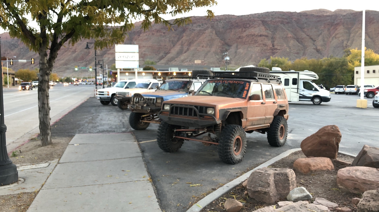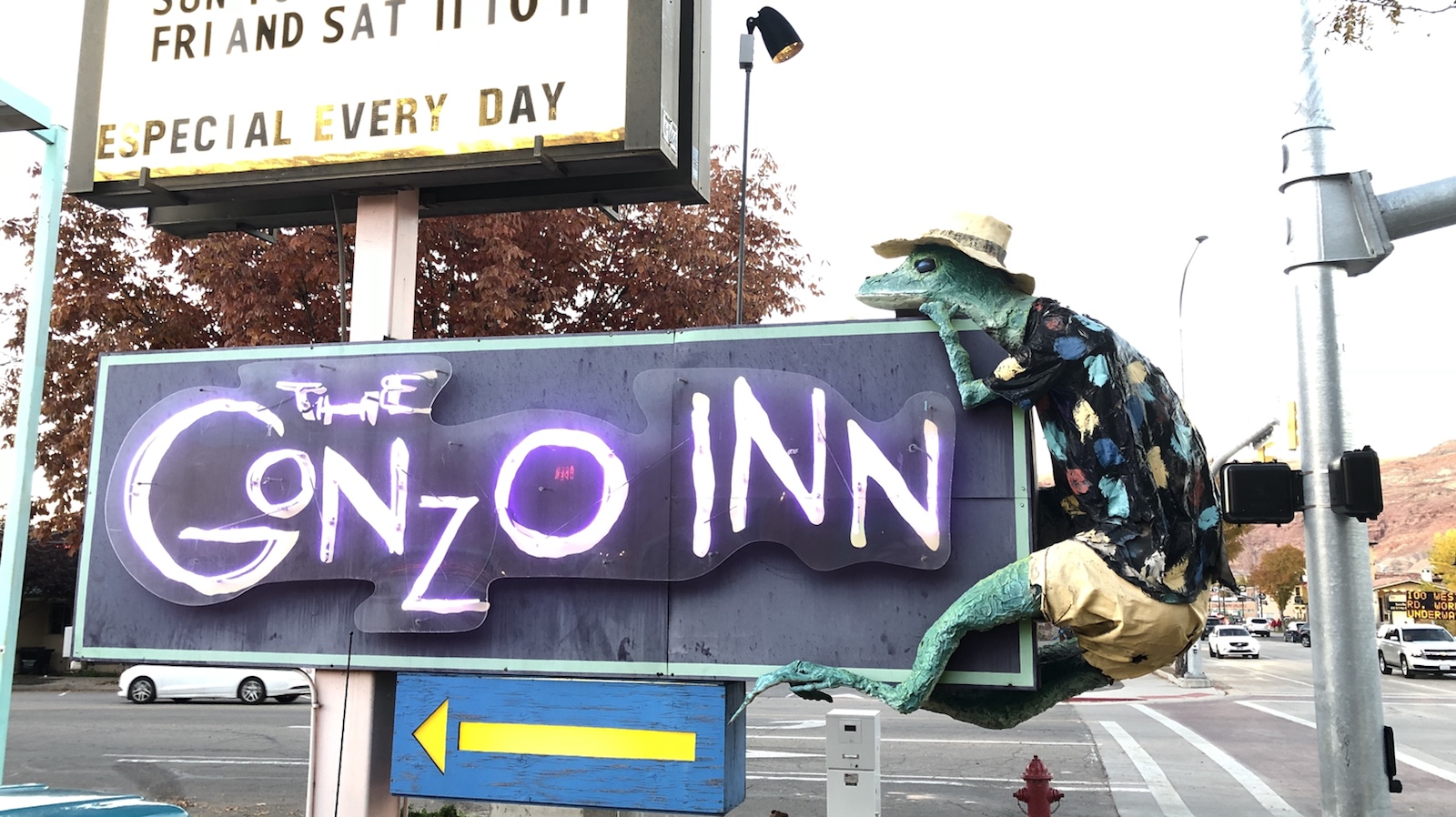 Die letzten 100 Meilen waren dann eher unspektakulär und zogen sich dementsprechend hin. Aber irgendwann hatten wir es dann doch geschafft und wir bezogen unser Zimmer im Rustic Inn, das im Zentrum von Moab in einer Seitenstraße liegt.