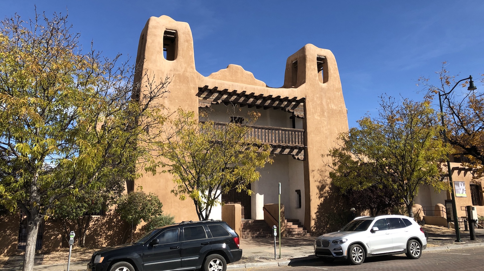 Kurz vor 14 Uhr konnten wir unser Zimmer im Hilton Historic Plaza beziehen. Wir wollten ein Zimmer im Zentrum der Stadt, um alles schön zu Fuß erkunden zu können. Da war das Hilton das günstigste. Wir wollen einen Tag bleiben. Santa Fe soll eine schöne Altstadt haben.