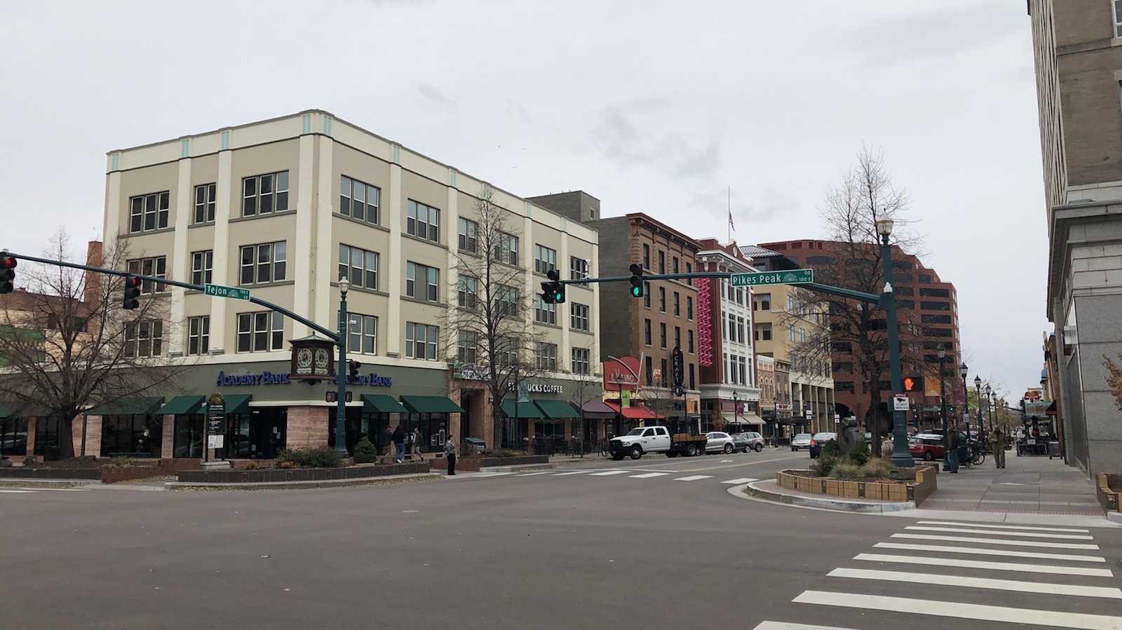 Nun sind wir in Colorado Springs und es ist arschkalt. Von den Bergen zieht eine feuchte Kaltfront runter. Und diese Stadt liegt genau unterhalb der Berge. Laut Wetterbericht soll es in den Bergen ja heute noch schneien.