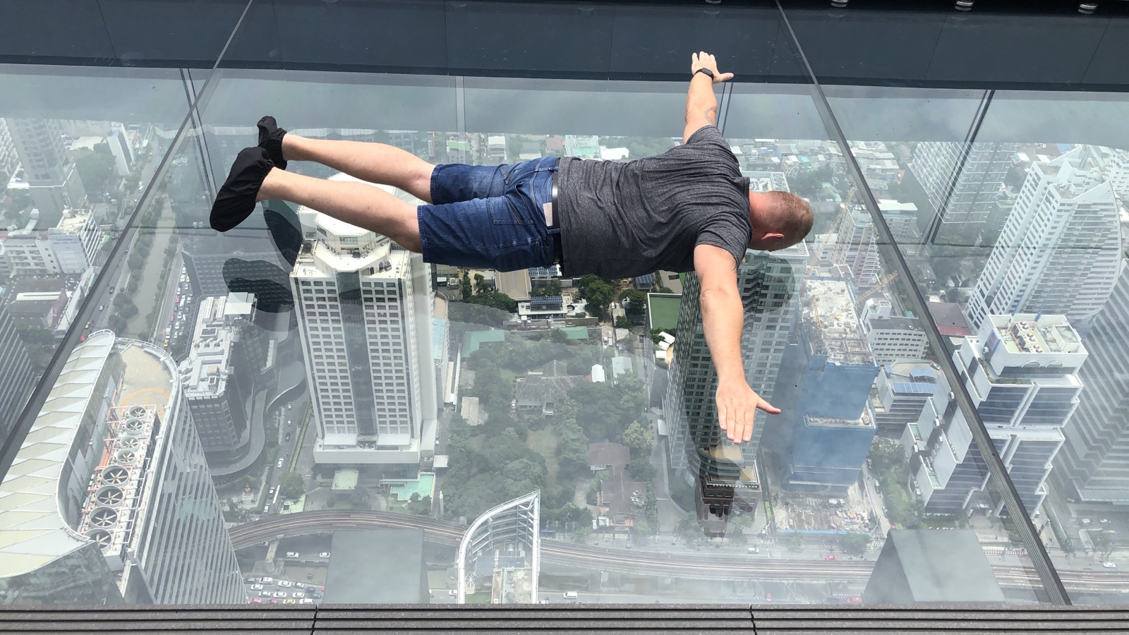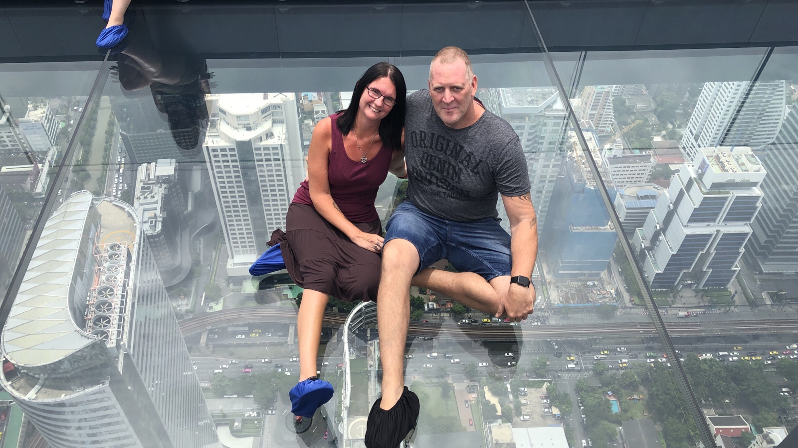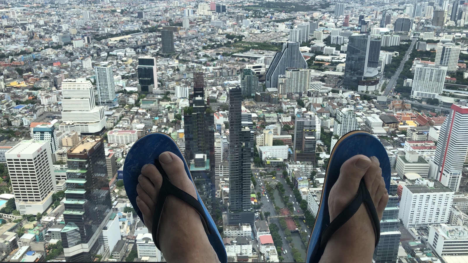 Die letzten zwei Tage muss irgendwie wieder Bangkok sein. Dank Bonuspunkte konnten wir wieder vergünstigt ins DoubleTree. Von dort aus konnten wir das Mahanakhon Hochhaus gut mit der Skytrain erreichen. Ein Highlight von Bangkok ist die Aussichtsplattform des Hochhauses auf 314 Metern Höhe mit einem Glasboden. Circa 50€ hat die Auffahrt für uns beide mit dem wohl krassesten Fahrstuhl gekostet. Die Fahrstuhlwände und Decke sind ein großer Bildschirm auf dem während der Fahrt in die Höhe ein Film in horizontaler Fahrtrichtung läuft. Die Aussichtsplattform selbst ist den Eintritt allemal wert. Ein must see in Bangkok. Auch das Gebäude hat von außen ein von weitem sichtbares Erkennungsmerkmal. Es sieht aus, als ob Godzilla ein paar Ecken rausgebrochen hat.