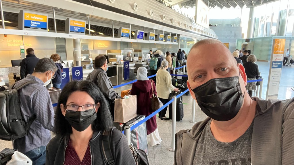 01.10.2021 Die Warteschlange am Check-In Schalter der Business-Class war fast länger als der von der Economy-Klasse. Eine Stunde mussten wir warten, bis wir an der Reihe waren.