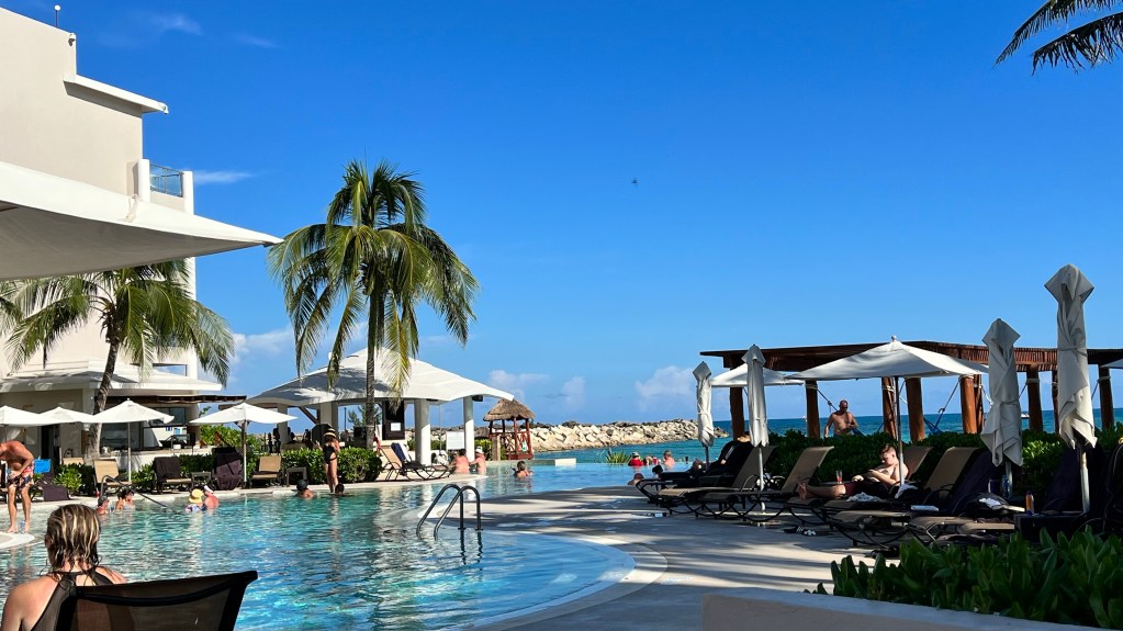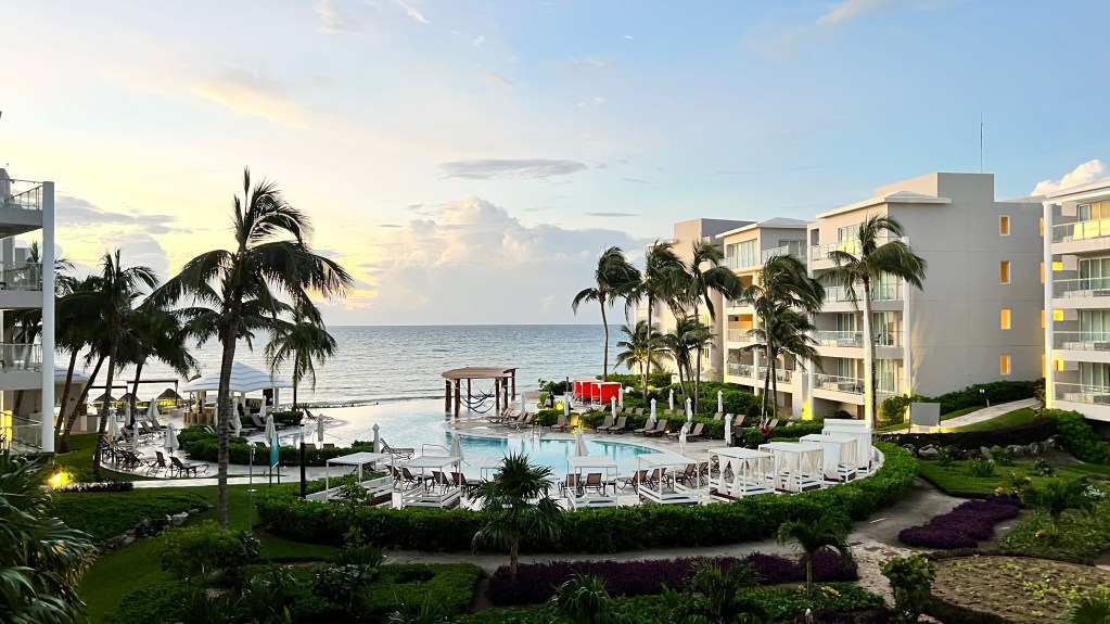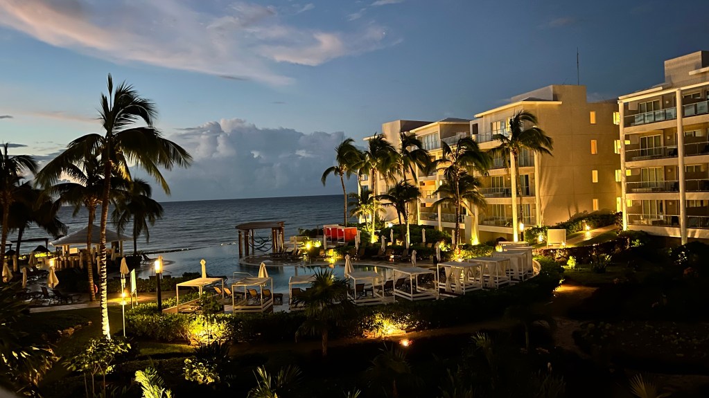 Der Anflug auf Cancún war sehr feucht. Es regnete in strömen, aber der Pilot hat das sehr gut hinbekommen. Kaum waren wir in Cancun hörte der Regen auf. So wie es sein sollte. Wir haben uns ein Shuttlebus zum Hotel genommen. 35 Euro hat die Fahrt nach Puerto Morelos gekostet. Der Ort liegt zwischen Cancún und Playa del Carmen. Dieses mal machen wir zuerst „Urlaub“ und dann reisen wir rum. 3 Tage All Inclusive gönnen wir uns, um mal runter zu kommen und die Zeitverschiebung auszugleichen. Aber der Schwerpunkt auf dieser Tour liegt sowieso auf Beach und Entspannung. Deswegen wird es die nächsten Tage nicht viel zu schreiben geben.