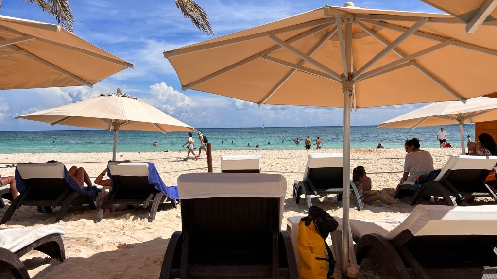 Das Grand Fifty Suites ist ein Apartmenthaus am Rand der 5th Avenue, der Vergnügungsmeile von Playa del Carmen. Wir haben eine große Suite für 50€ / Nacht bekommen. Der Strand ist 500 Meter entfernt und zum Zimmer gehören 2 Strandliegen und ein Sonnenschirm im Beach Club Martina. Diesen können wir nur empfehlen. Bequeme Liegen, gutes Preis/Leistung Verhältnis und ab und an tanzen ein paar Mädels. 😎