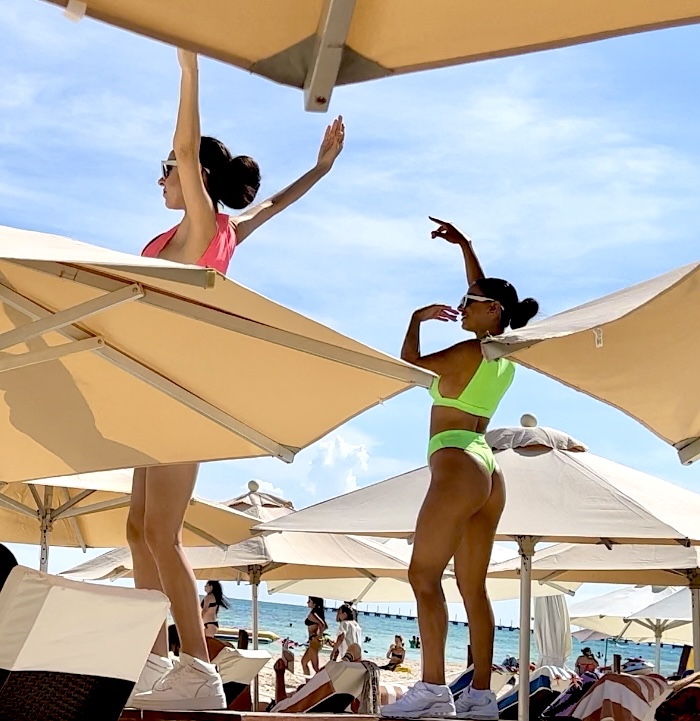 Unser Plan war, hier 3 Tage zu bleiben und dann auf die Insel Holbox fahren. Leider haben wir erfahren, dass die Straßen auf der Insel überschwemmt sind. Und da die Straßen nicht befestigt sind, ist alles schlammig. So gibt es auch keine Transportmöglichkeit um mit dem Gepäck zum Hotel zu kommen. Das gefällt uns gar nicht. Wir wussten zwar, das es dort zur Regenzeit zu Überschwemmungen kommt aber dieses Jahr regnet es sehr wenig. So hatten wir gehofft doch auf diese schöne Insel zu kommen. Jetzt müssen wir überlegen, was wir alternativ machen. Der beste Platz zum überlegen war der Beach Club Martina. Wir haben 2 Tage überlegt. 😜😎