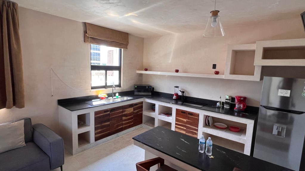 Der Ort Tulum ist zwar auch nicht schön, versprüht aber etwas Traveller-Atmosphäre. Unser „Zimmer“ , wenn man das so nennen darf, ist wieder eine Suite. Das UJO Condo Boutique liegt relativ zentral. Vom Busbahnhof konnten wir mit Gepäck die 650 Meter gehen.