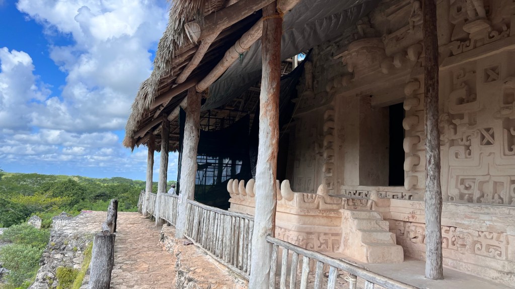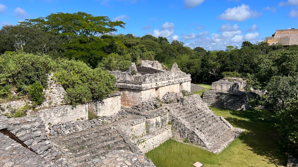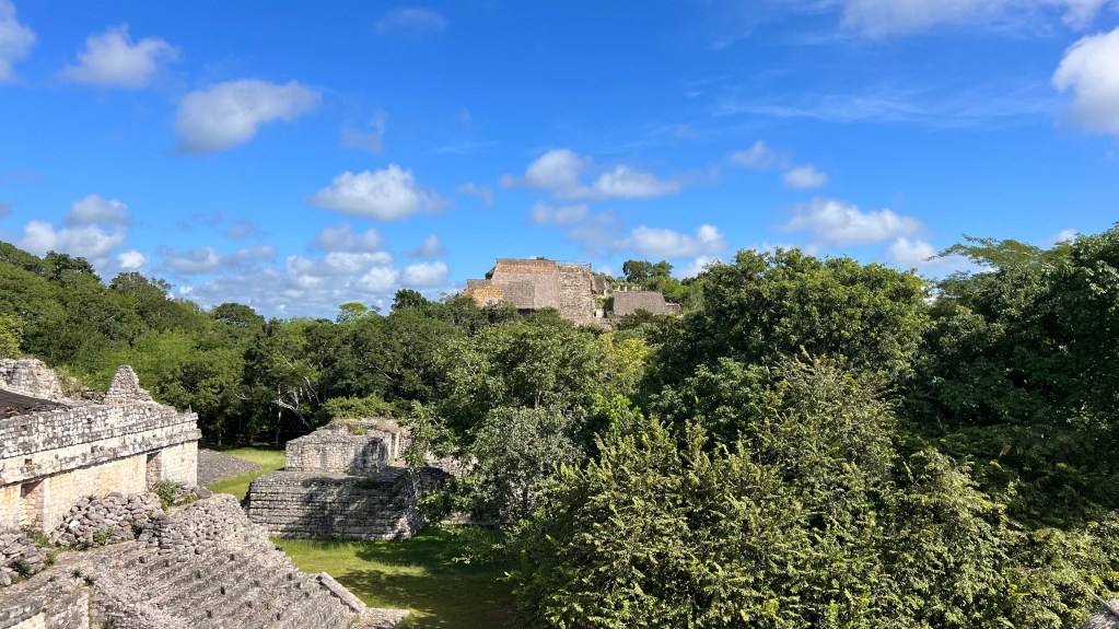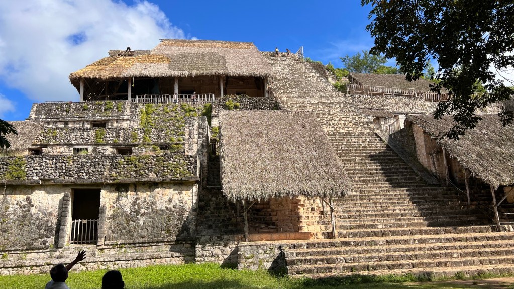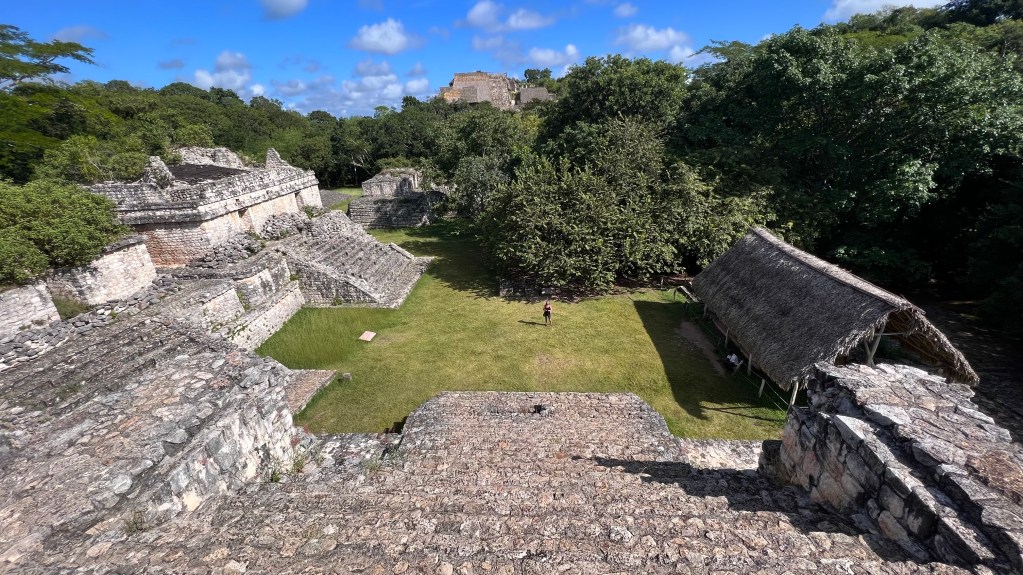 12.10.2021 Ek Balam heißen die Maya-Ruinen die wir heute besucht haben. Sie sind circa 30km entfernt und weniger besucht als Chitzen Itza und Coba, die ähnlich weit weg sind. Wir haben uns vom Hotel ein Taxi organisieren lassen, dass uns 8.30 Uhr abgeholt hat. So früh wie möglich vor Ort sein, ist das Geheimnis für eine ungestörte Besichtigung und schöne Aufnahmen.