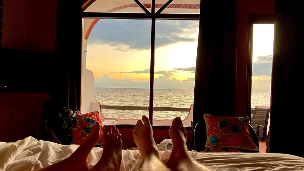 Hier haben wir eine kleine Airbnb Wohnung direkt an der Waterkant bezogen. Die Wohnung ist auf der „rauen“ Seite der Insel. Wir haben zwar kein Sandstrand vor dem Fenster aber dafür die raue See und einem Sonnenaufgang dem wir vom Bett aus betrachten können.