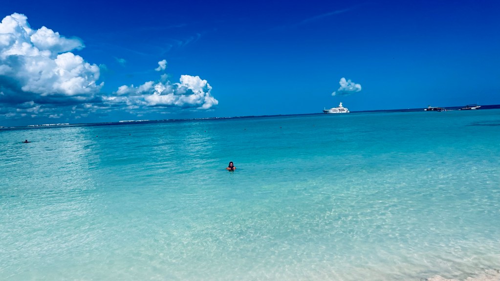 Wir werden an diesem sehr touristischen Strand ein paar Tage verbringen. Das Wasser ist einladend klar und blau und es kommt trotz manchmal lauter Ami-Touristen etwas Caribic-Feeling auf
