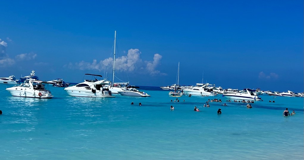 Später haben wir erlebt, das der Playa Norte eine beliebte Destination für partymachende Yachtbesitzer und Yachtmieter ist. Es war aber nicht ausschweifend und es war auch mal wieder schön das „Leben“ zu sehen.